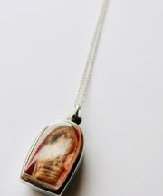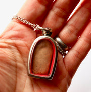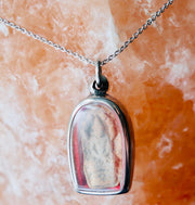 - 18" chain which is gold sterling silver brass. The pendant measures 1 1/4" in length 3/4" in width.