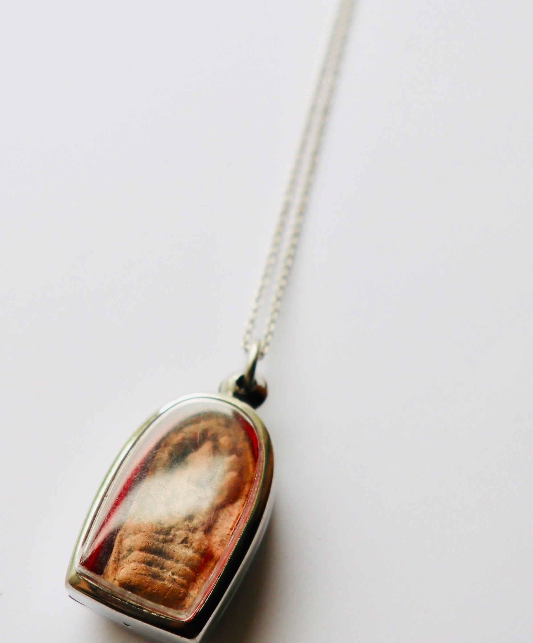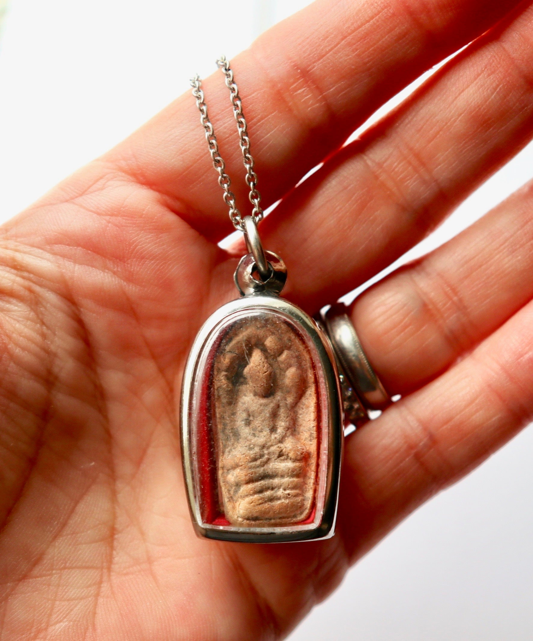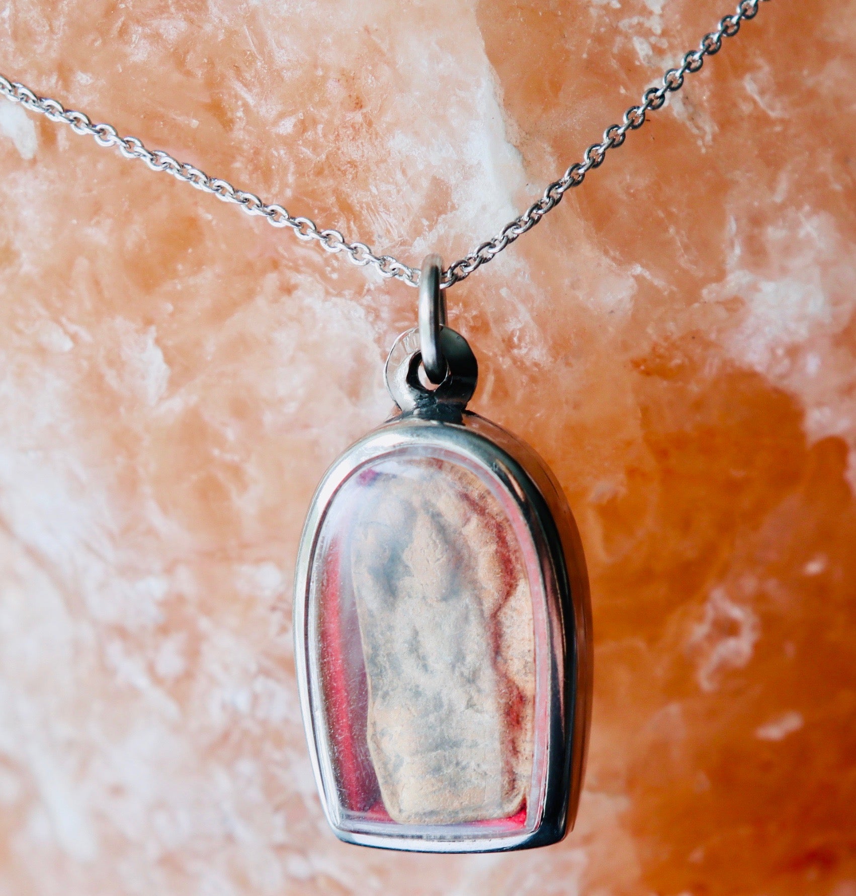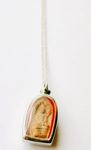 Experience the divine power of the Brahman Buddha Necklace! Each piece is one-of-a-kind, crafted with golden sterling silver brass, set on an 18" chain, and encased in a special plastic and metal case. Let the inspirational spirit of the Buddha guide you with this beautiful, handmade piece by Studio City CA!