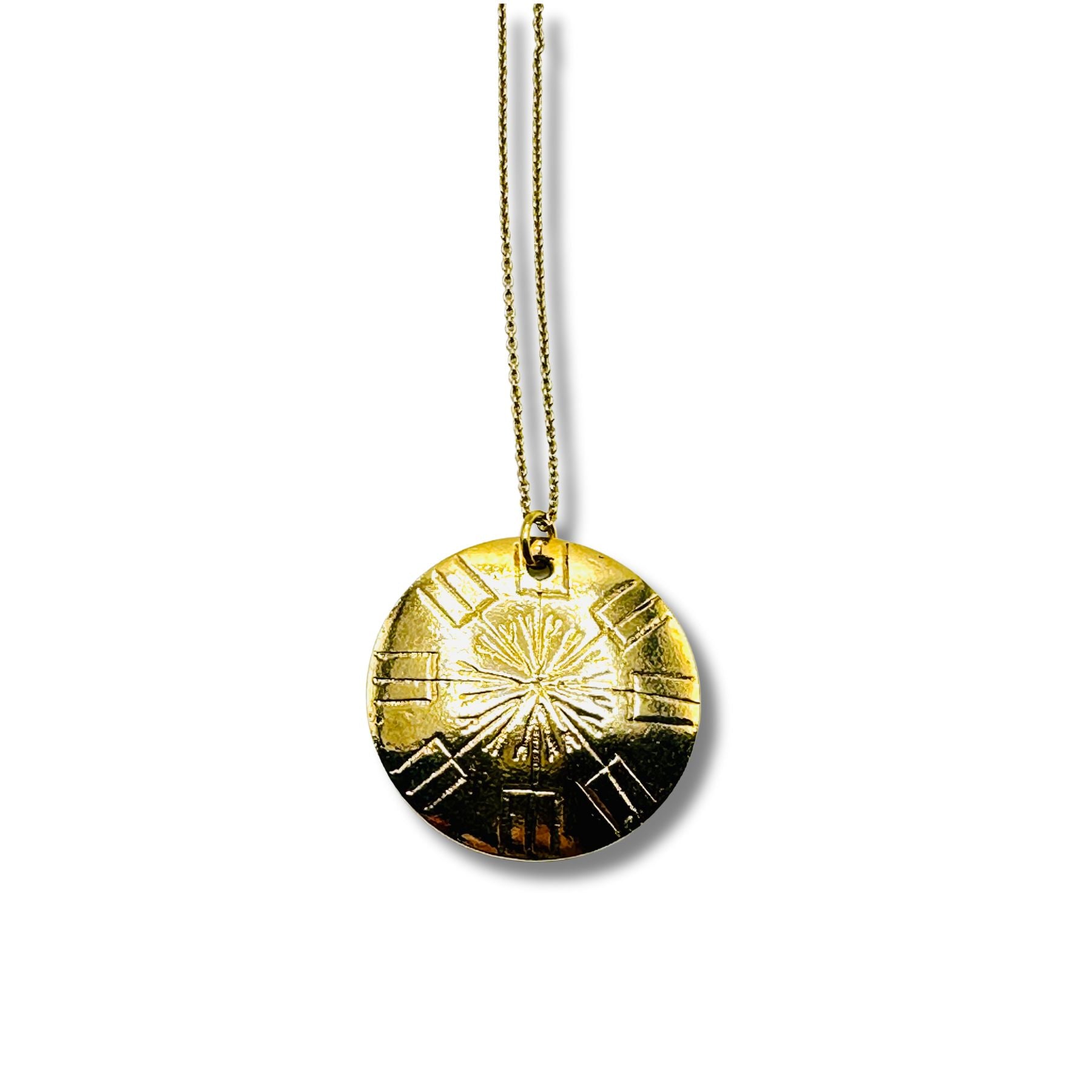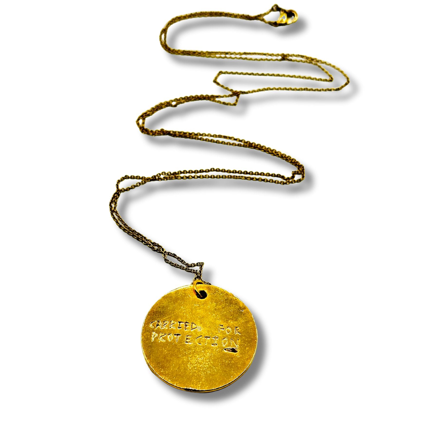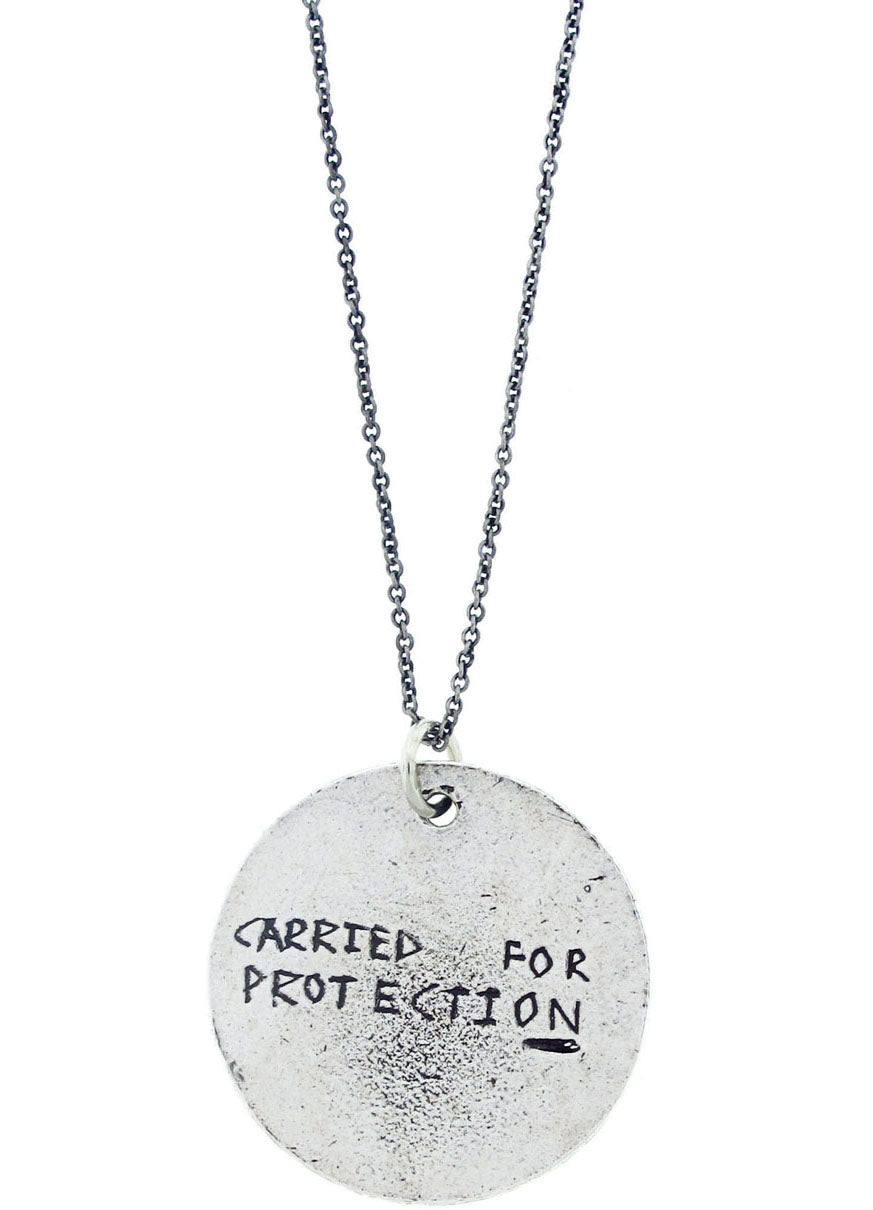 - "Carried for protection" stamped double sided pendant