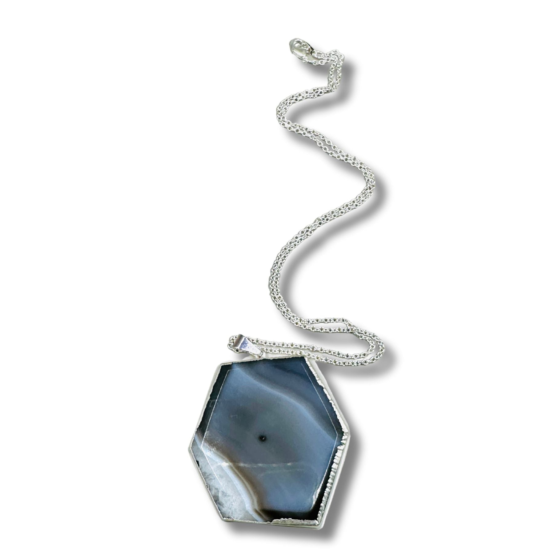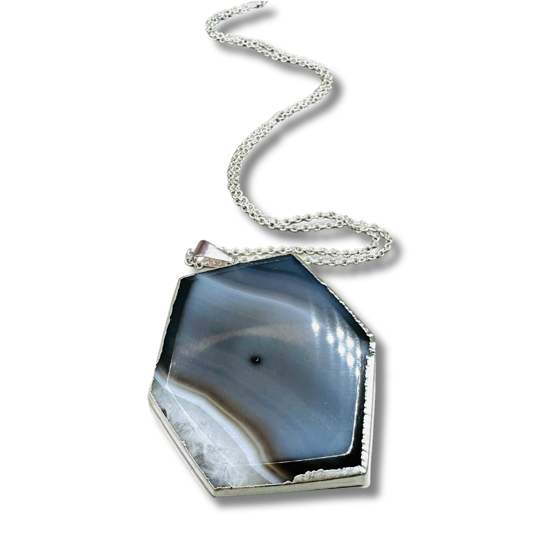 Bring nature to life with this unique Electroformed Agate Slice Necklace. Handcrafted with a black and white agate slice, it makes a statement with every wear. Flaunt your inner wild side and make a bold fashion statement!