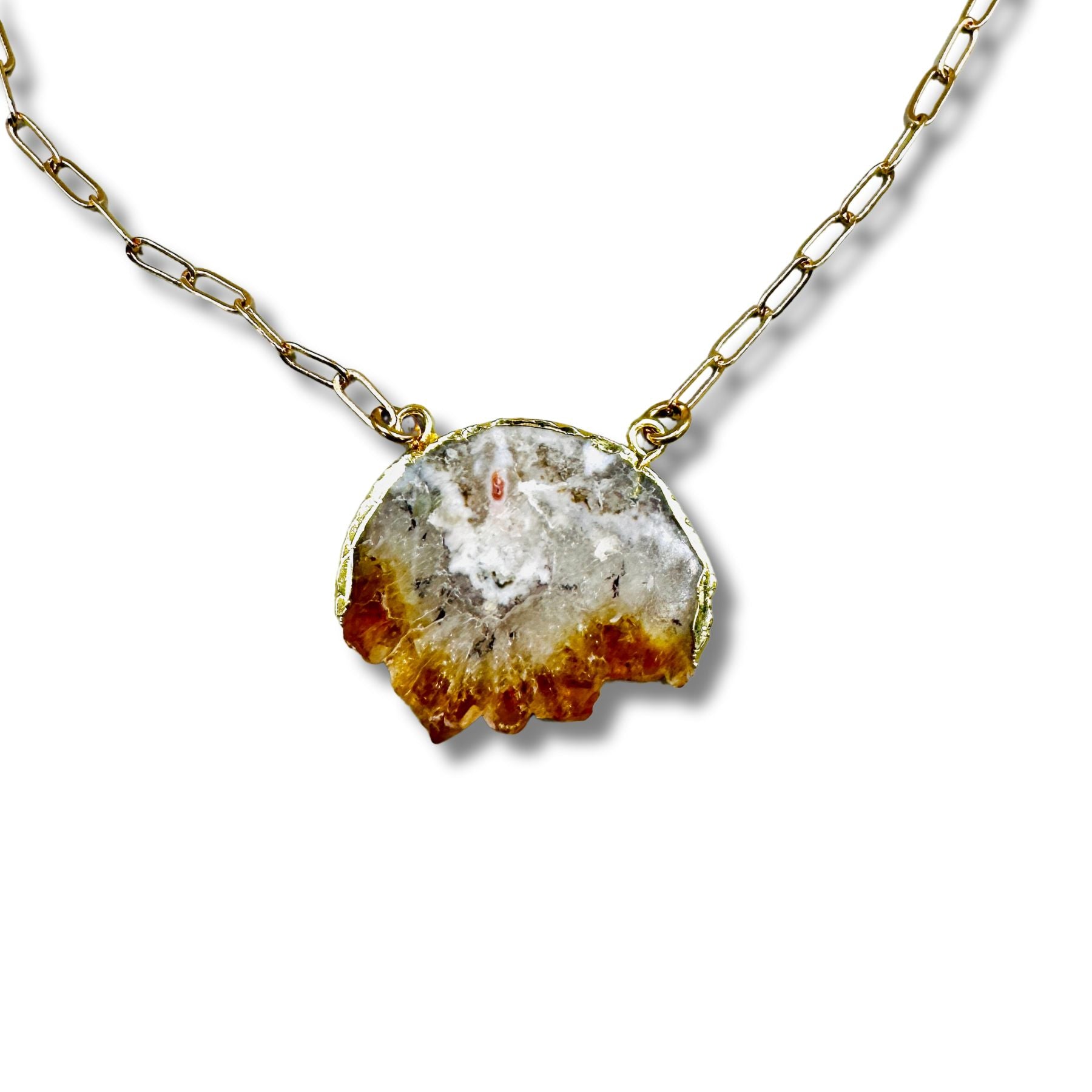 Citrine Slice Electroformed Necklace
