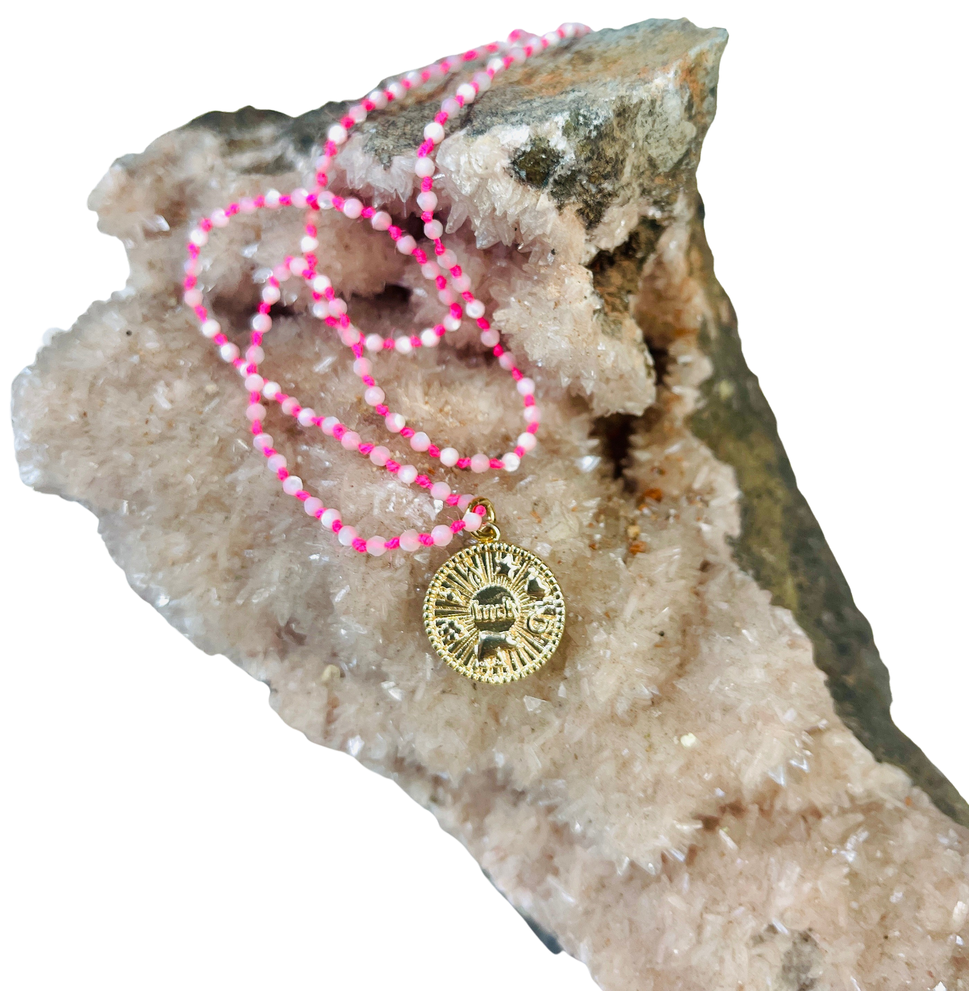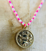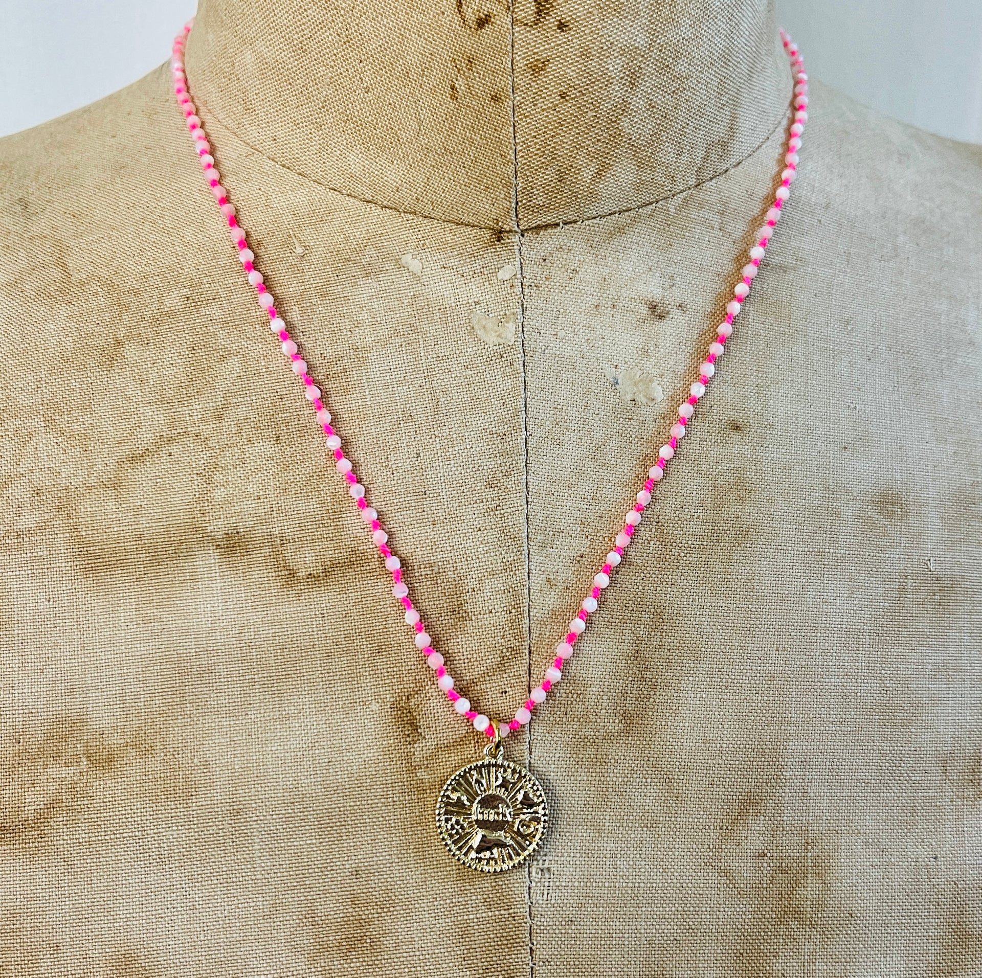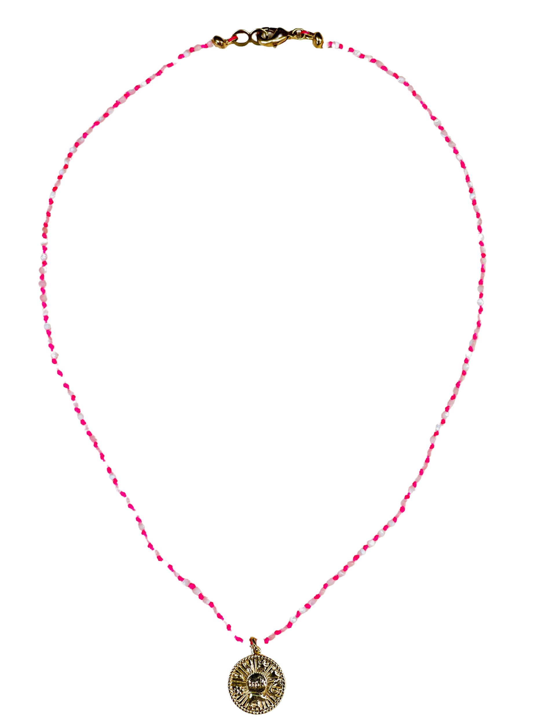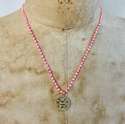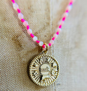 Fluorescent Pink Mother of Pearl Good Luck Necklace