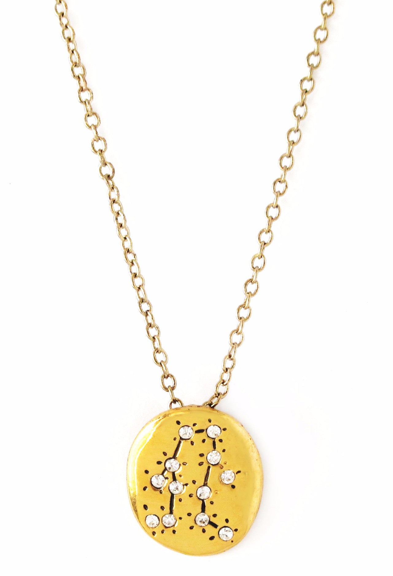 Our constellation necklaces are available in all 12 zodiac signs and feature a cluster of crystal stones that form the constellation that corresponds to each one. Your necklace will arrive on a printed card, like the one pictured here.