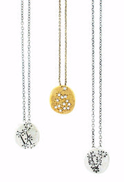 - Approx. 1/2" x 9/16" constellation pendant (pewter base)