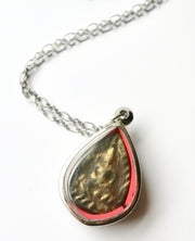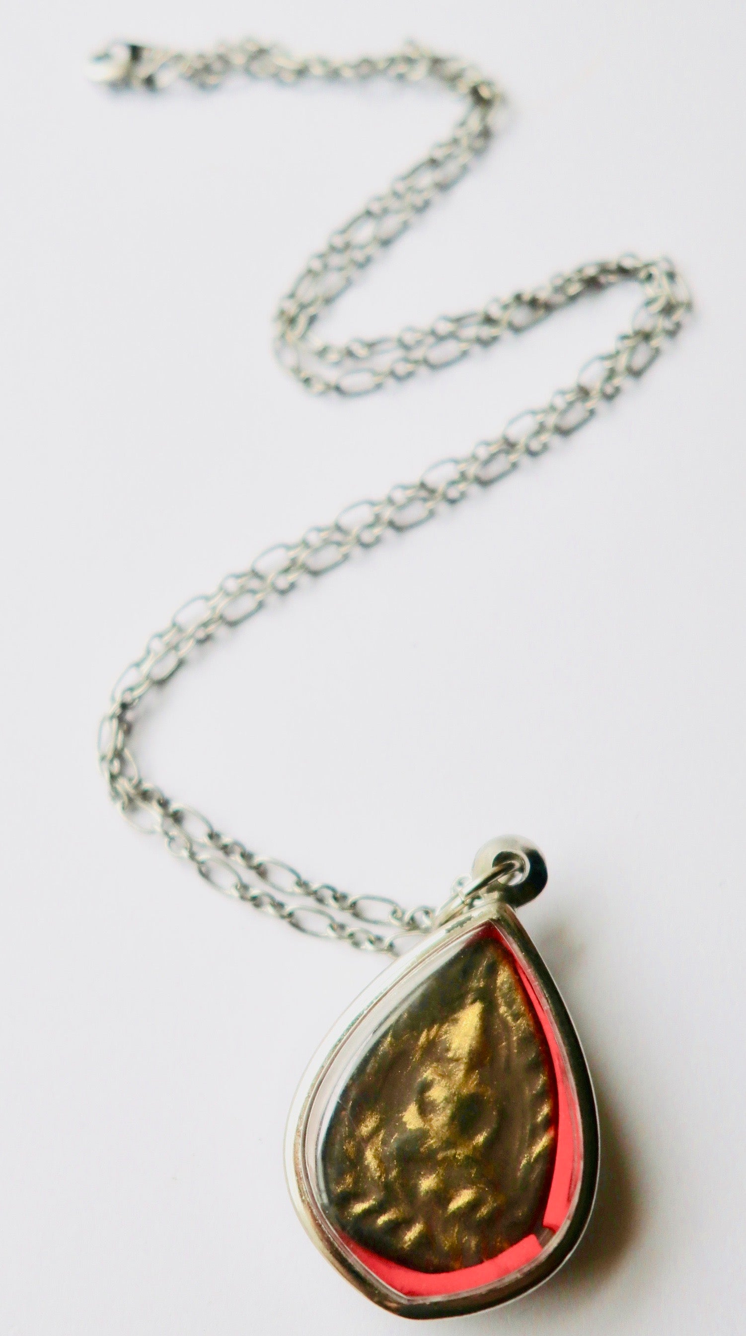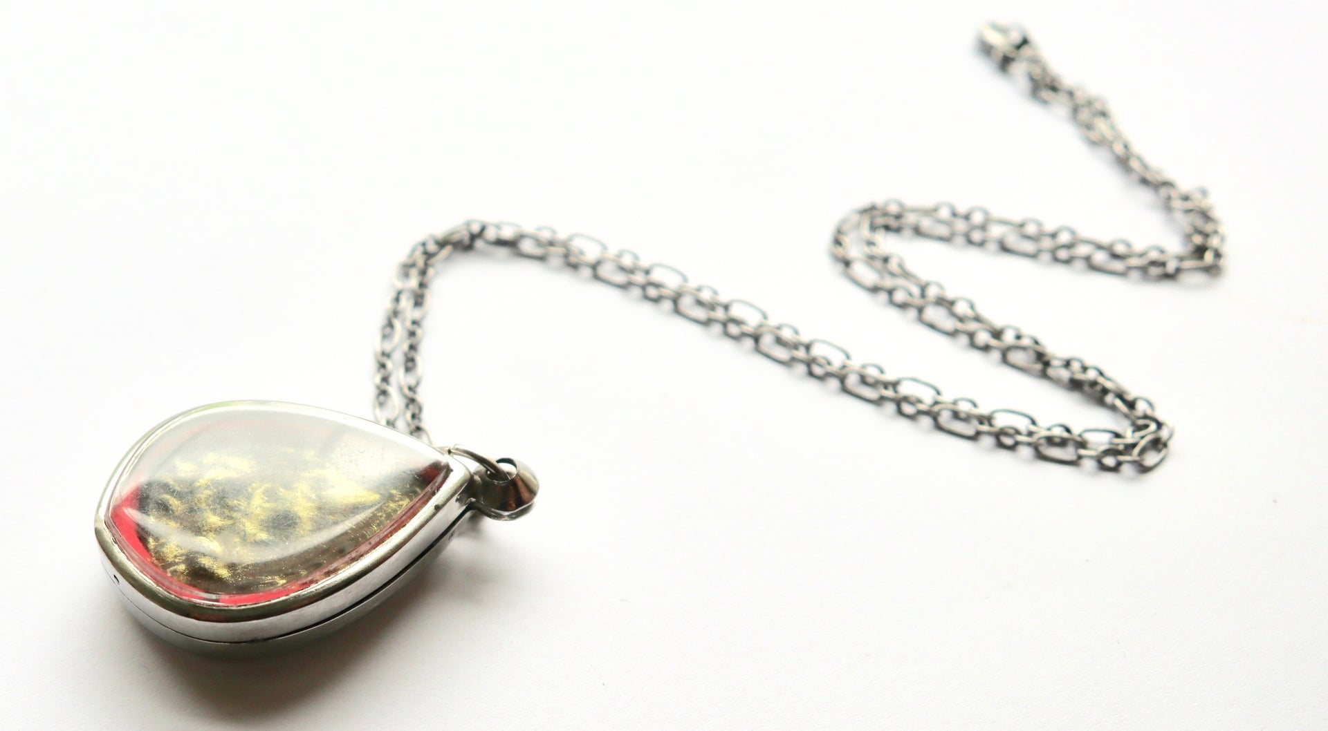 - 18" chain which is gold sterling silver brass. The pendant measures 1 1/4" in length 1" in width.