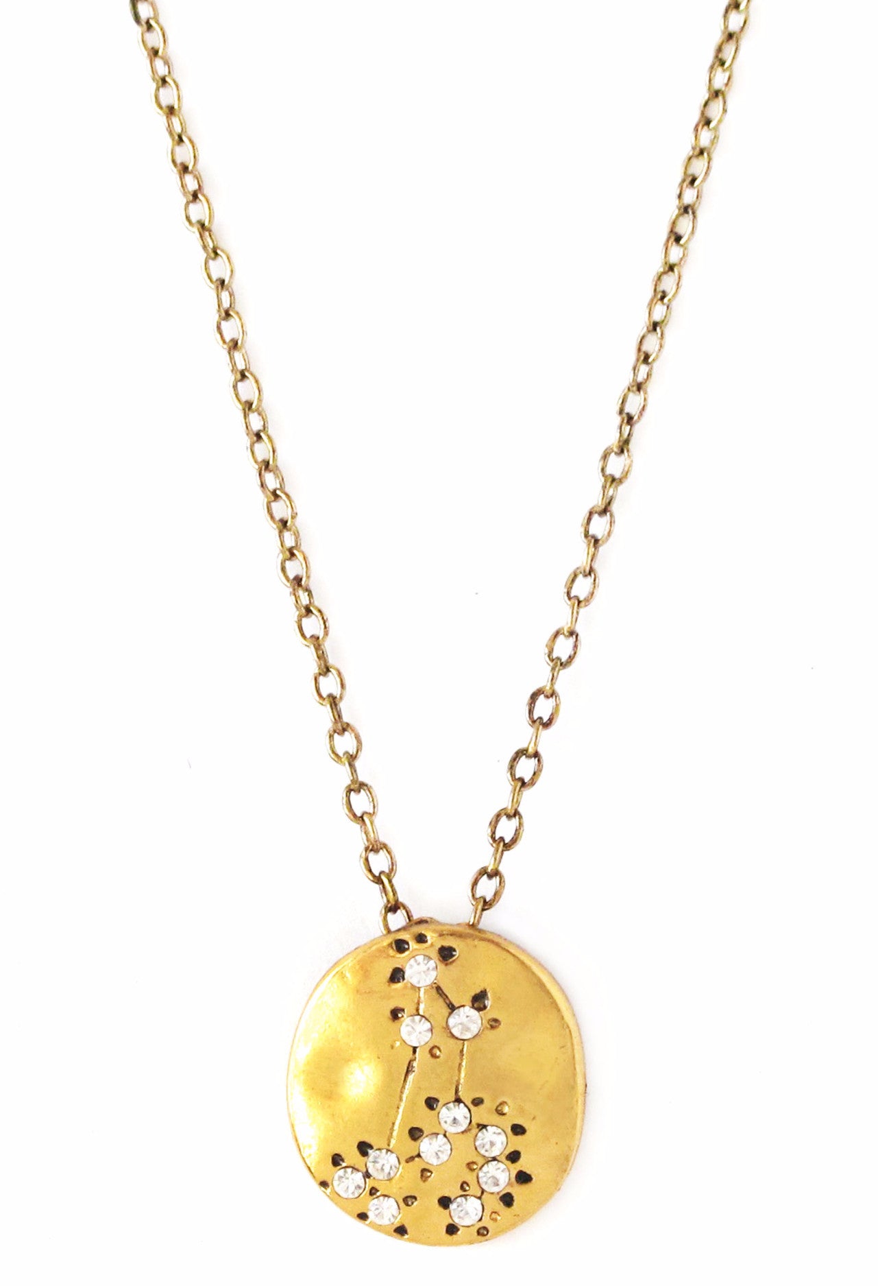 Our constellation necklaces are available in all 12 zodiac signs and feature a cluster of crystal stones that form the constellation that corresponds to each one. Your necklace will arrive on a printed card, like the one pictured here.