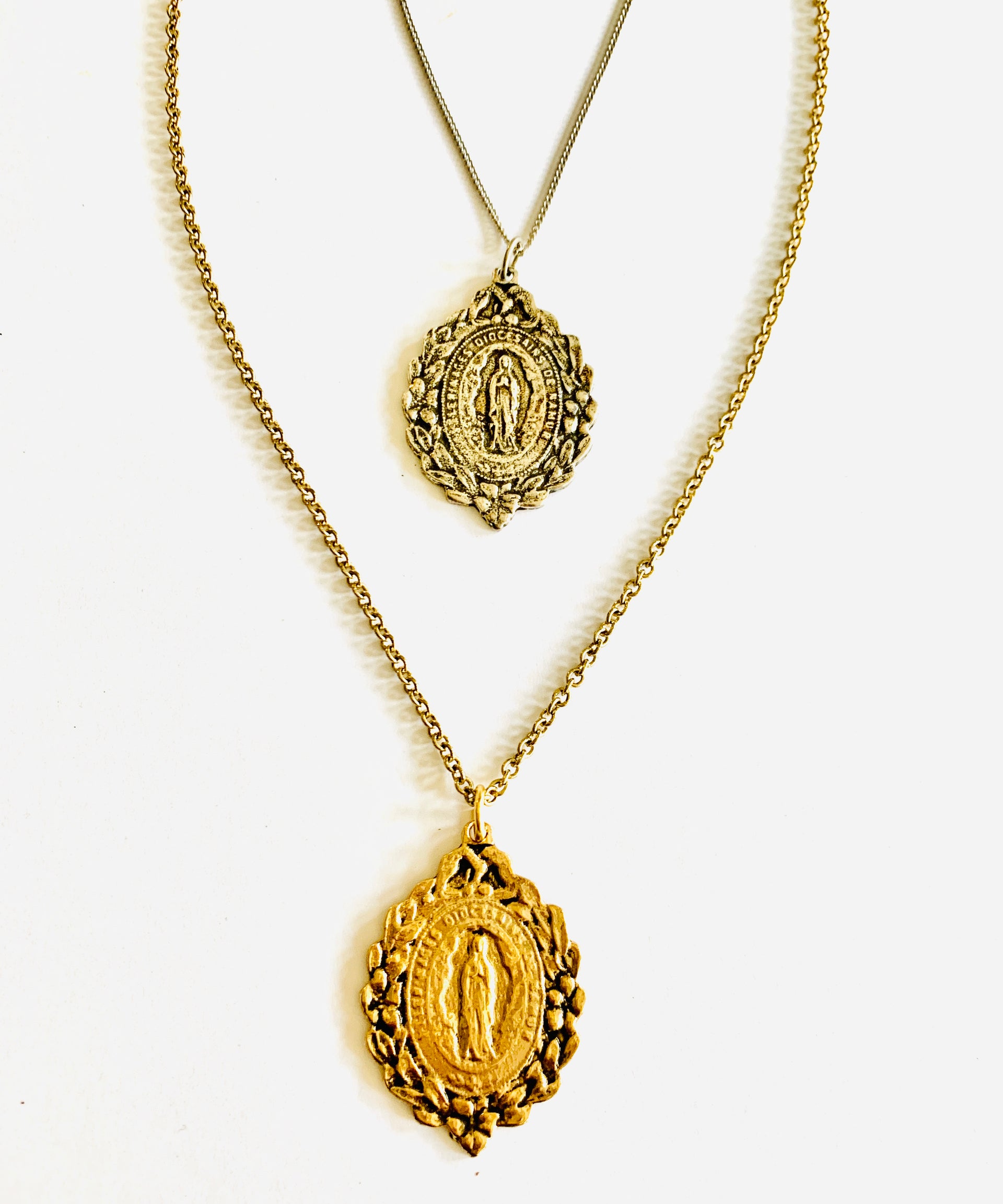 - 18" antiqued standard chain 24" gold plated chain(brass base)