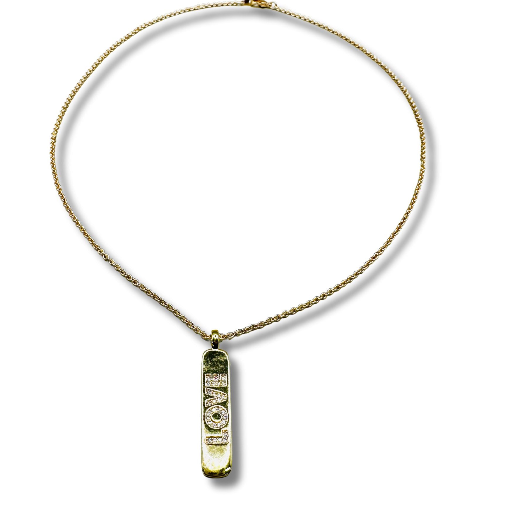 Declare your affection in sophisticated style with this Pave Love Pendant Necklace. Crafted with a shimmering pave love bar, it's a sparkling way to show your devotion with a little extra sparkle! Put on your P.L.P.N. and you'll be ready for luuuurrve.