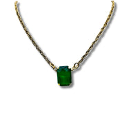 Introducing our AB light green emerald cut Rhinestone Gold Statement Necklace, the ultimate accessory for adding a touch of luxury to any outfit. Made with a sparkling AB Crystal Triangle rhinestone, this necklace will make you shine like a diamond. Elevate your style with this elegant and exclusive piece.