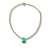 Light Green AB Emerald Cut Rhinestone Gold Statement Necklace