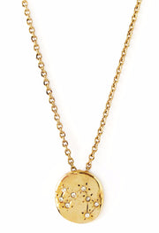 Our constellation necklaces are available in all 12 zodiac signs and feature a cluster of crystal stones that form the constellation that corresponds to each one. Your necklace will arrive on a printed card, like the one pictured here.