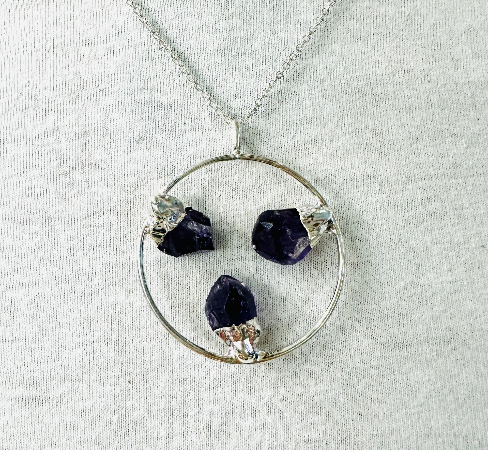 This Raw Amethyst Necklace is the perfect way to add a statement look to any outfit. Its unique, raw amethyst slice pendant is sure to turn heads and spark conversations! It's a great choice to show off your unique style.