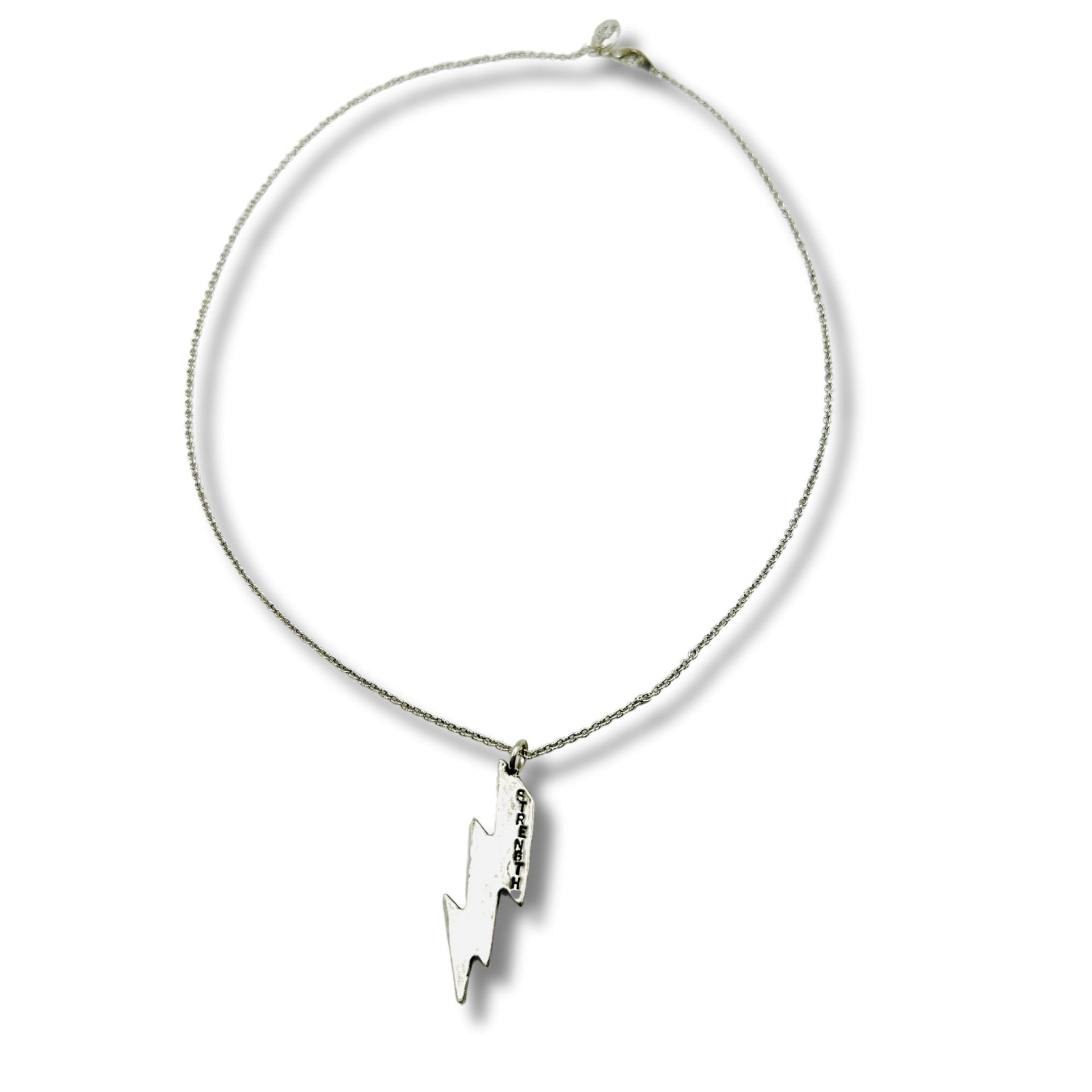 Unleash your inner strength with our Lightening Bolt Strength Stamped Necklace. Made from silver plated pewter, this necklace is a powerful reminder of your resilience and determination. Embrace your unique power and shine bright like a lightening bolt.