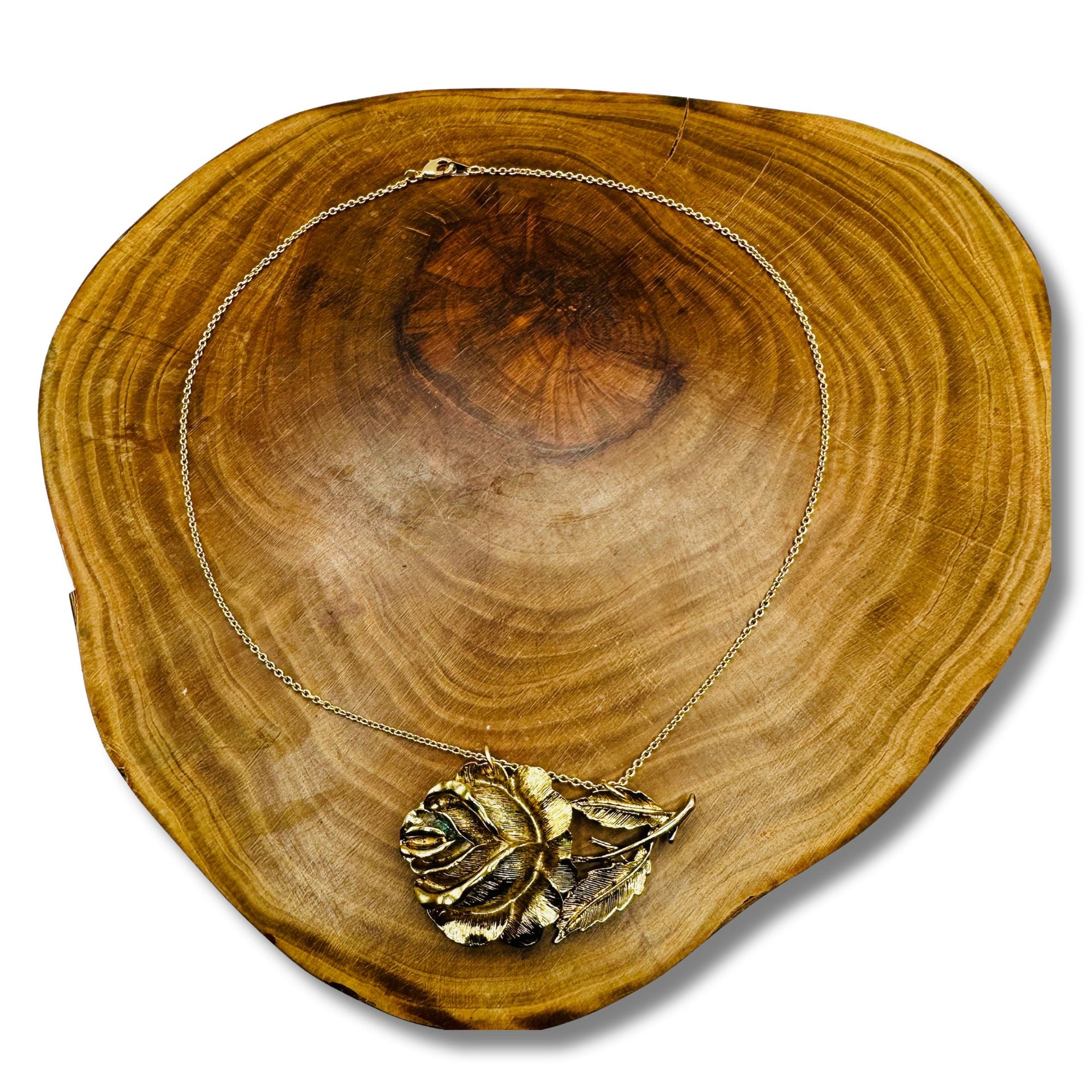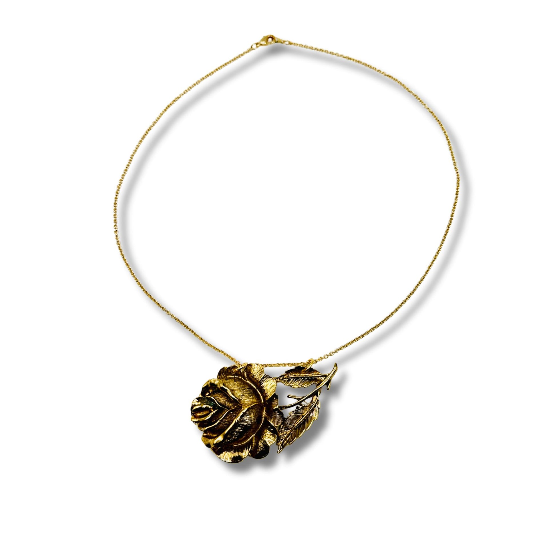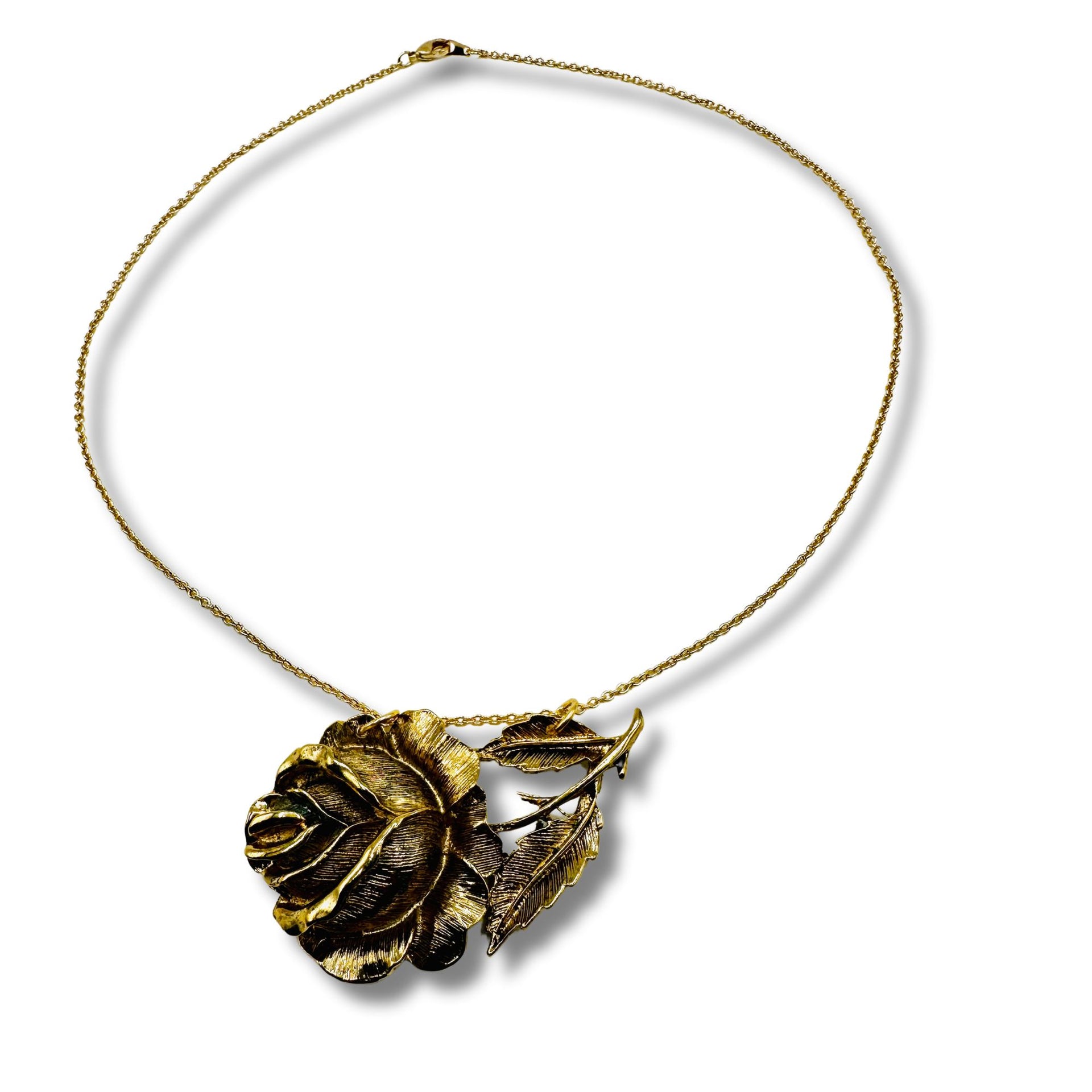 Relish in the incredible intricacy of our stunning rose transformed into an eye-catching necklace. A touch of patina on the rose adds a vintage flair that we absolutely adore.