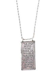 A few years ago I was in the midst of making a huge decision that required tremendous change in my life. I was telling my mother about my struggles and said to her, "If only the universe would send me a sign." At that very moment the elevator we were waiting for arrived. We stepped in and there was nothing on any of the walls except a framed sign with these words on them. It was my "sign." May this necklace be your sign.