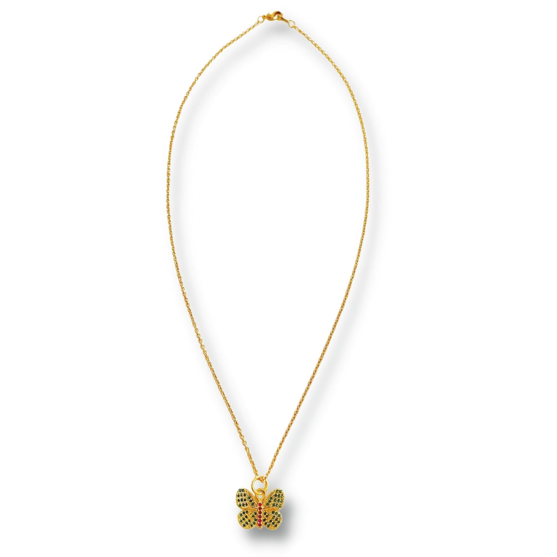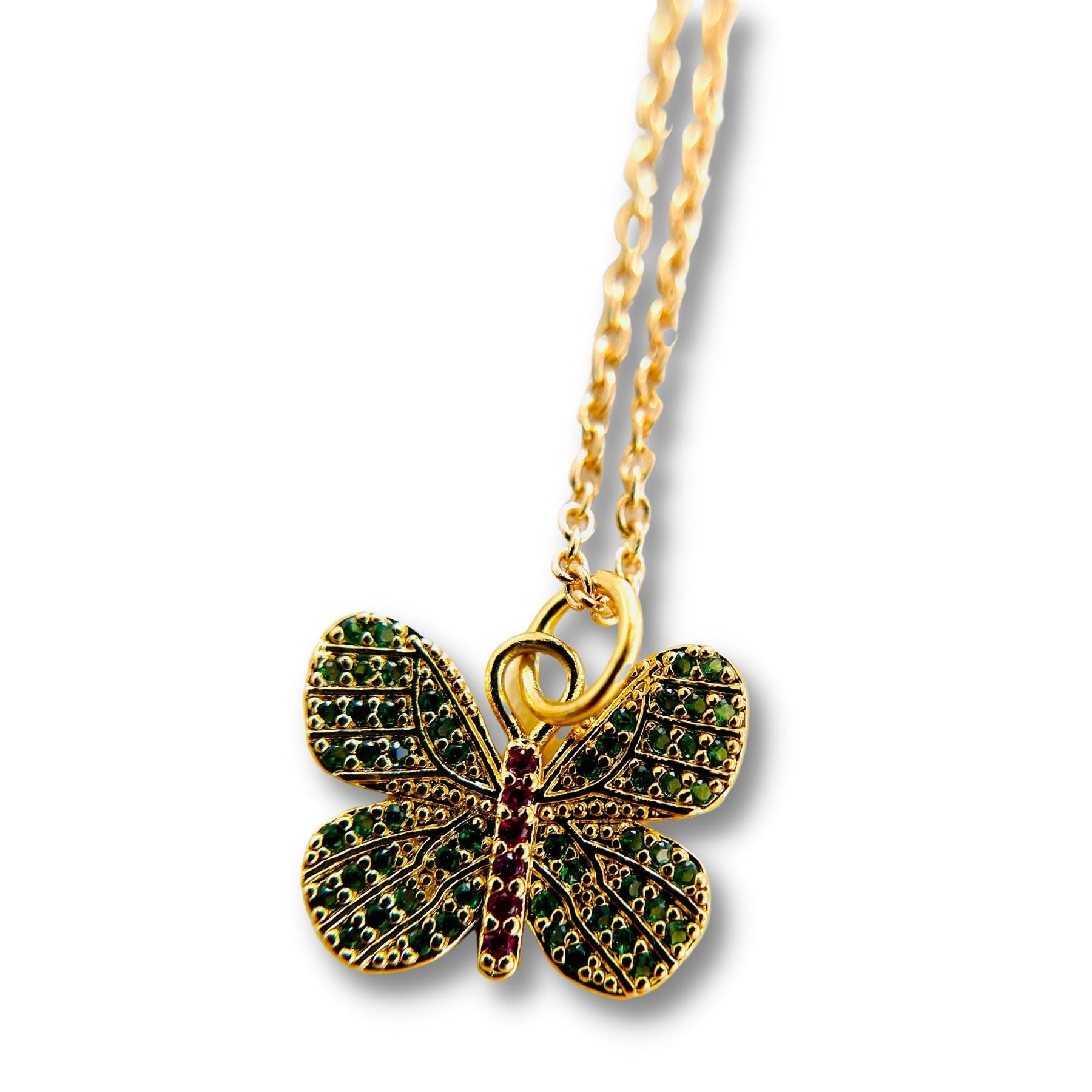 Transformation Gem Encrusted Butterfly Charm Necklace