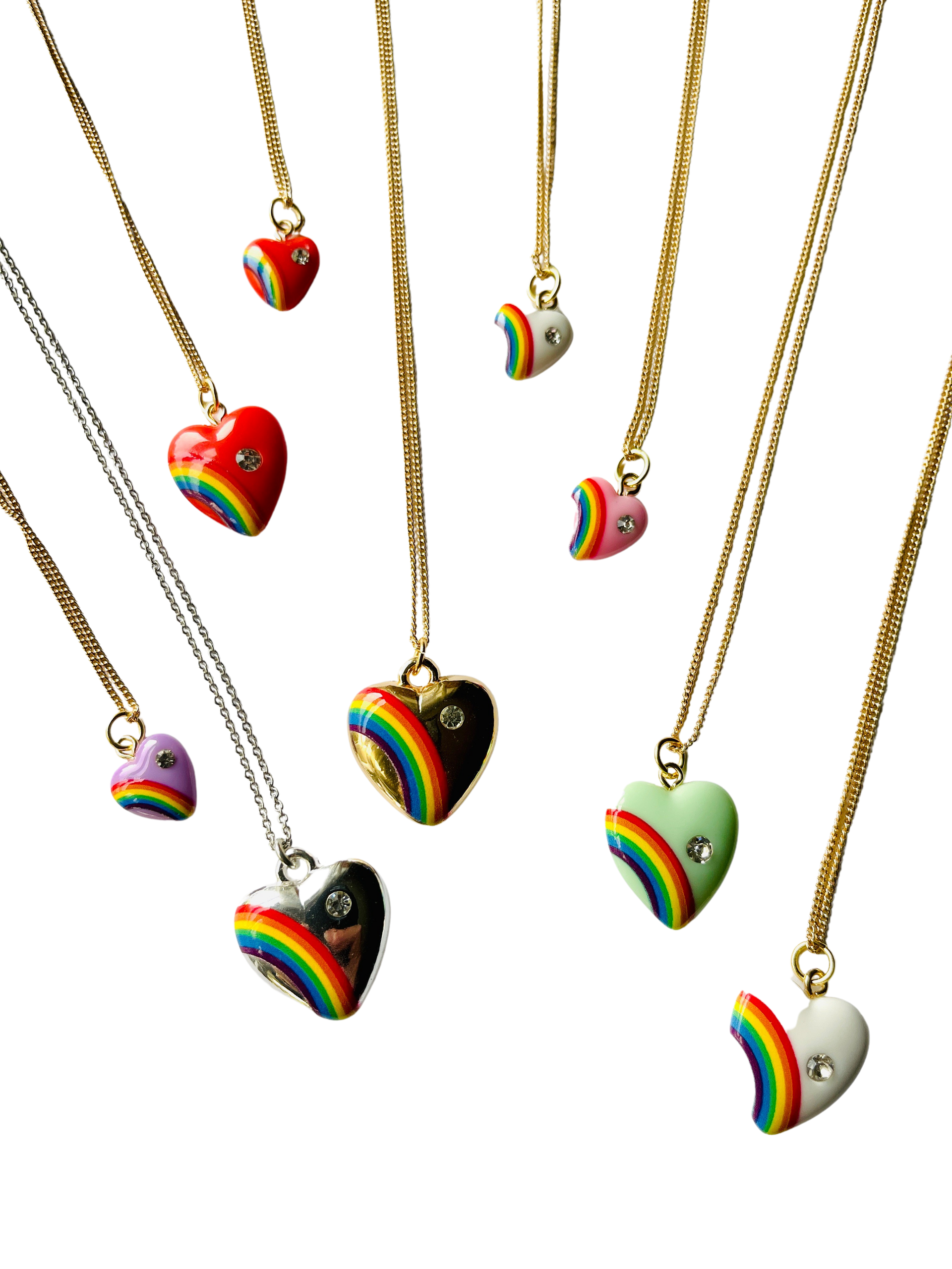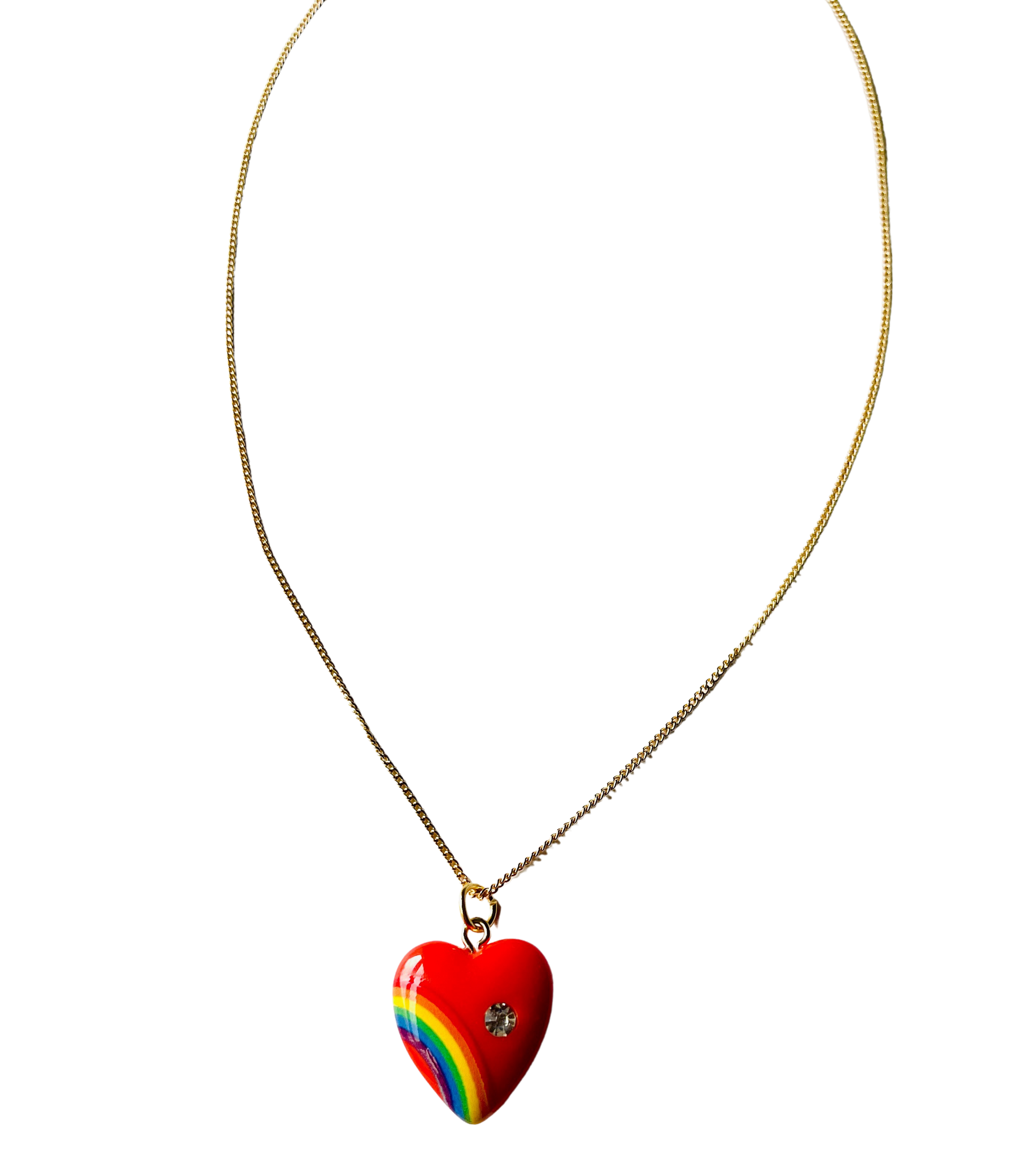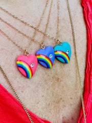 Vintage Inspired Rainbow Heart Necklace (Large)