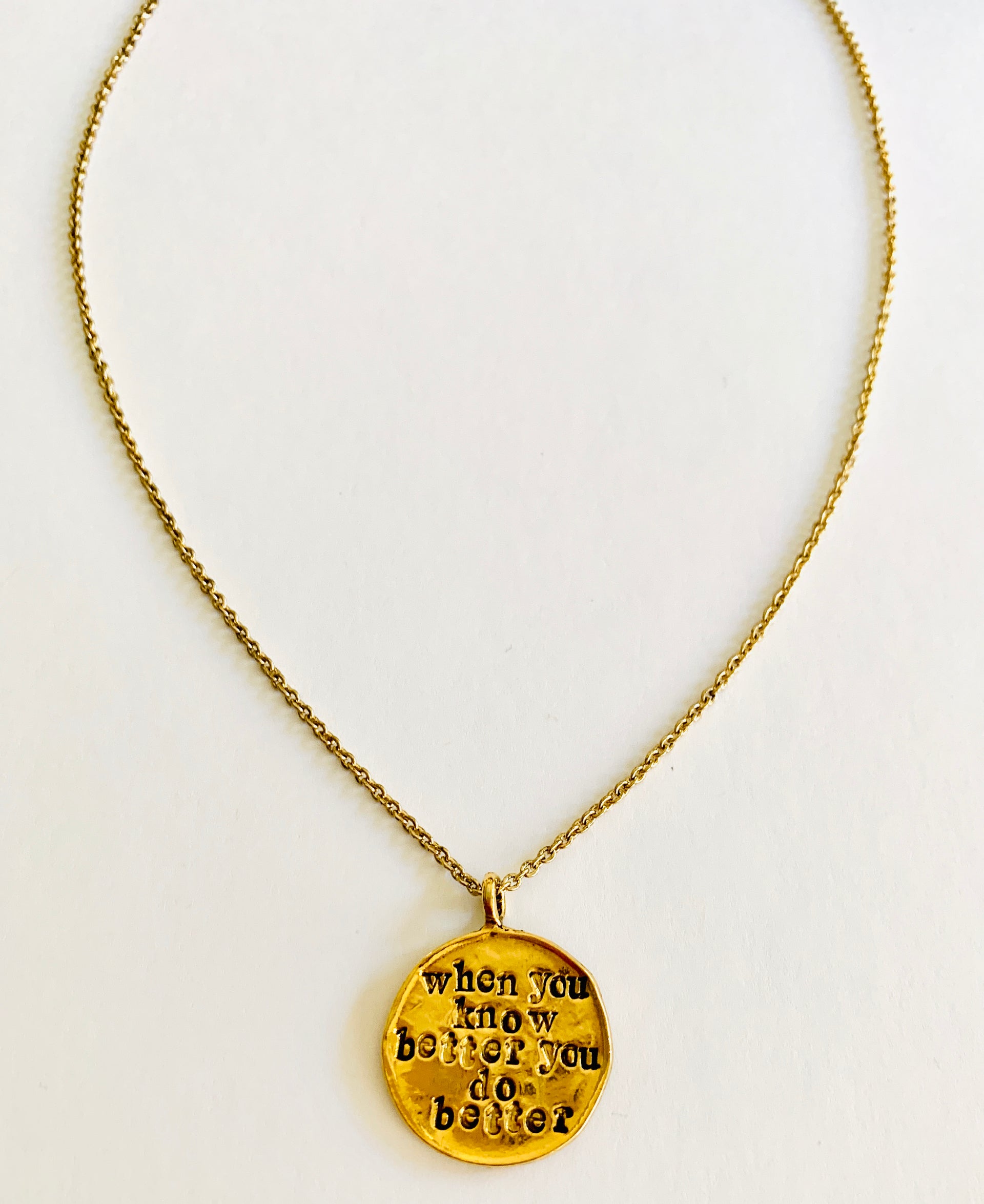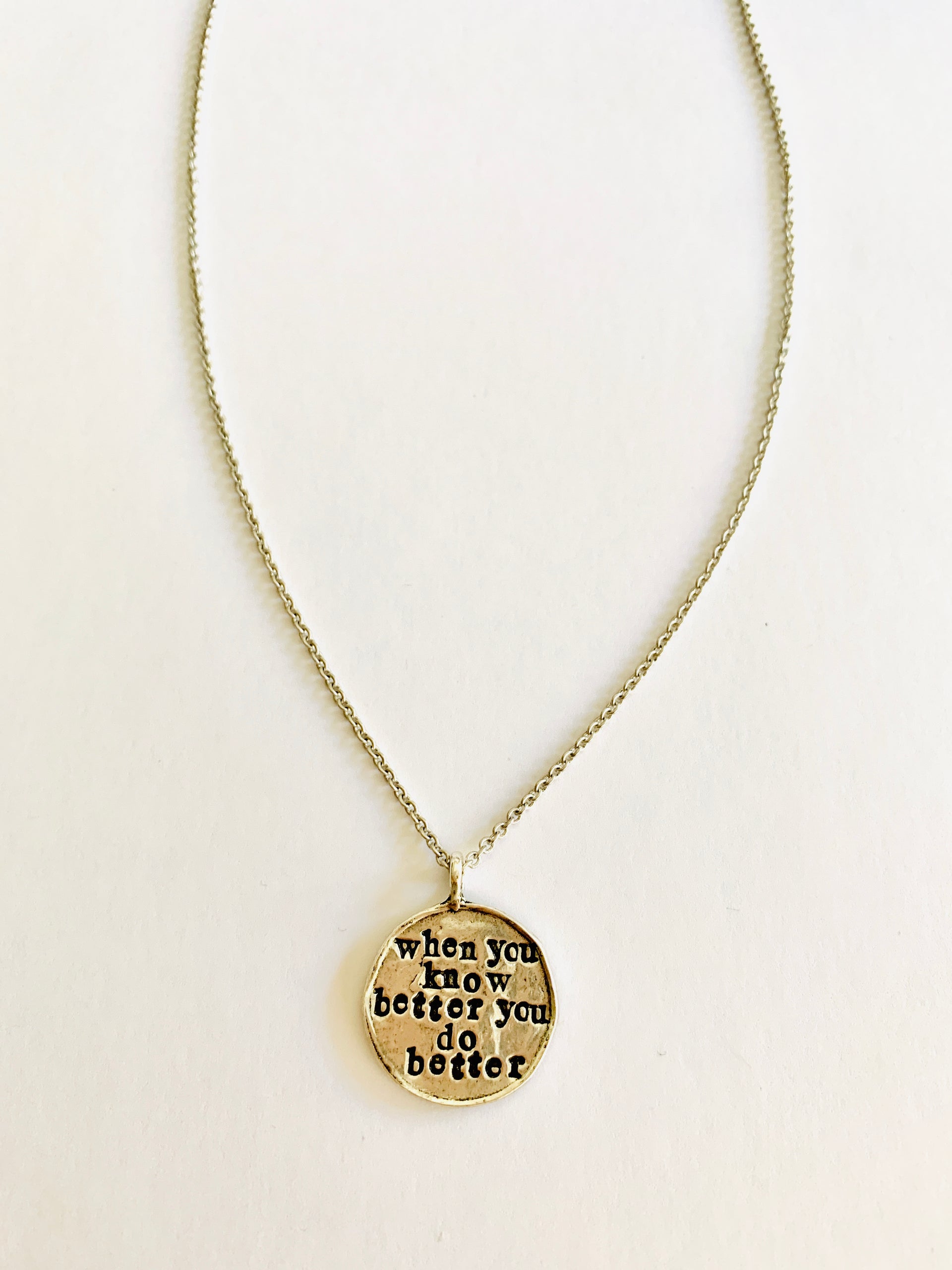 Celebrate your unique journey with our When You Know Better You Do Better Hand Stamped Necklace. Its classic design and meaningful message make it the perfect reminder to take heart-centered actions. Unforgettable and timeless, you'll be proud to wear this beautiful piece!