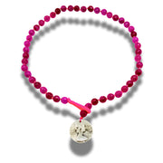 Fuchsia Quartz Hand Knotted Beaded Necklace with Genuine Coin