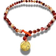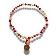 Carnelian Hand Knotted Beaded Necklace with Genuine Coin
