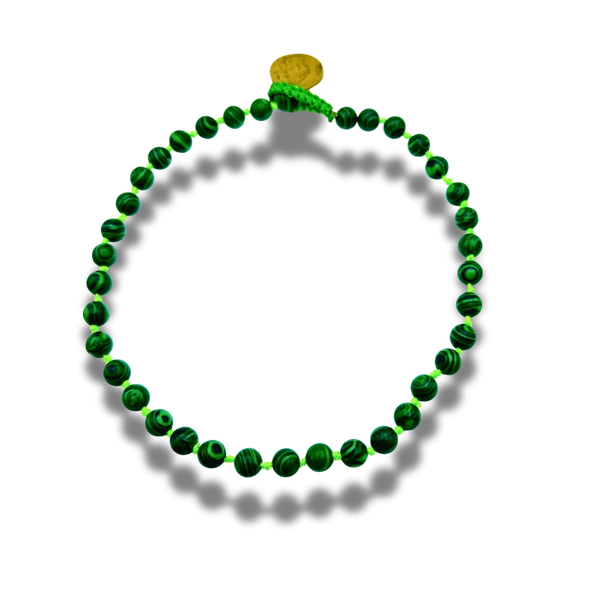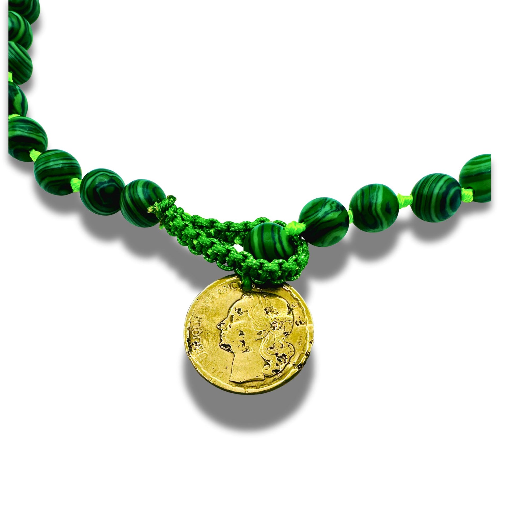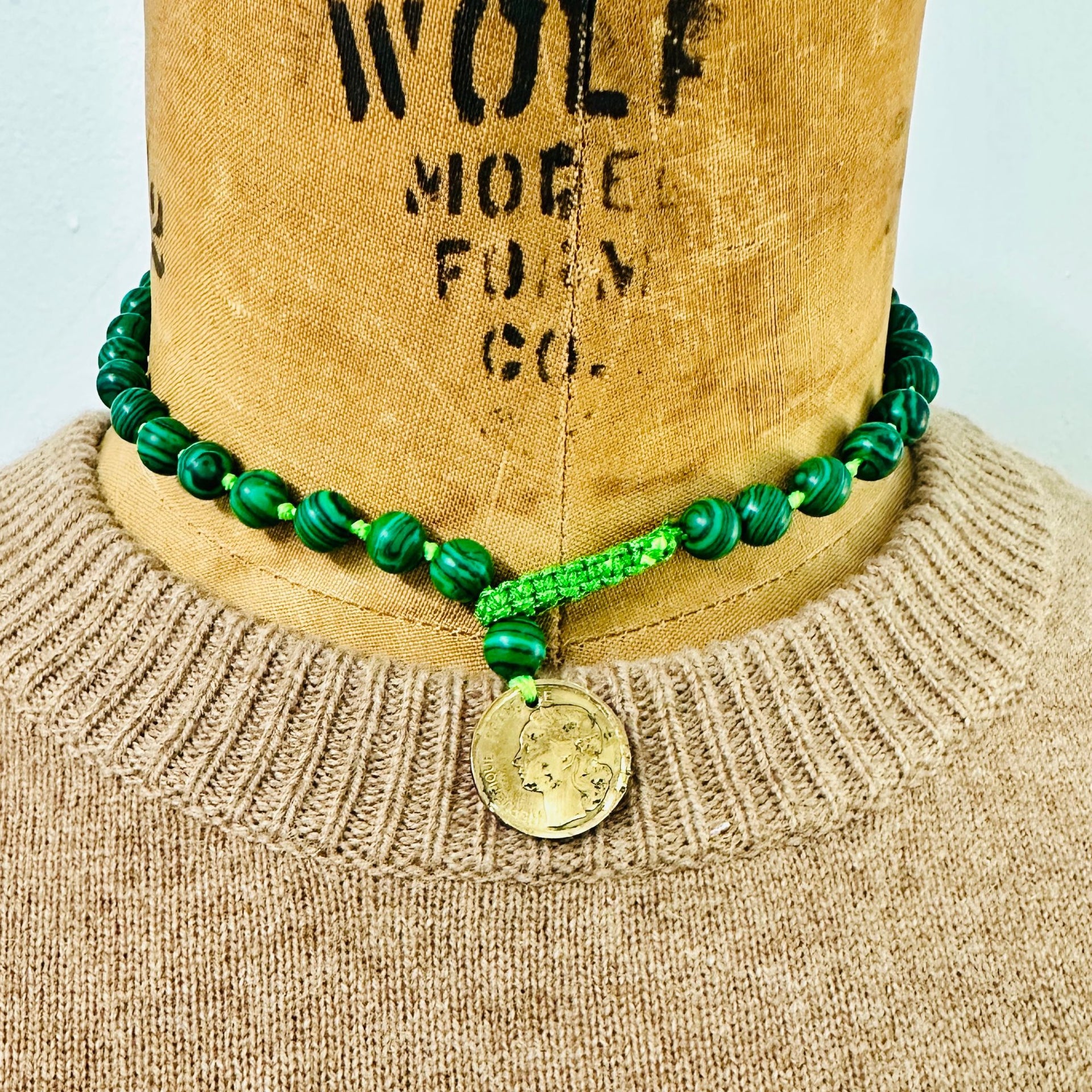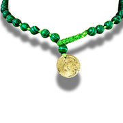 Malachite Hand Knotted Beaded Necklace with Genuine Coin