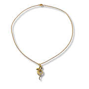 The Gilded Serpent Necklace is a powerful symbol of transformation, protection, and renewal. Crafted with a 14KT gold plated brass chain at a wearable 16 inch length, this necklace features a striking 1 inch pave serpent charm that adds both edge and meaning to any look.
