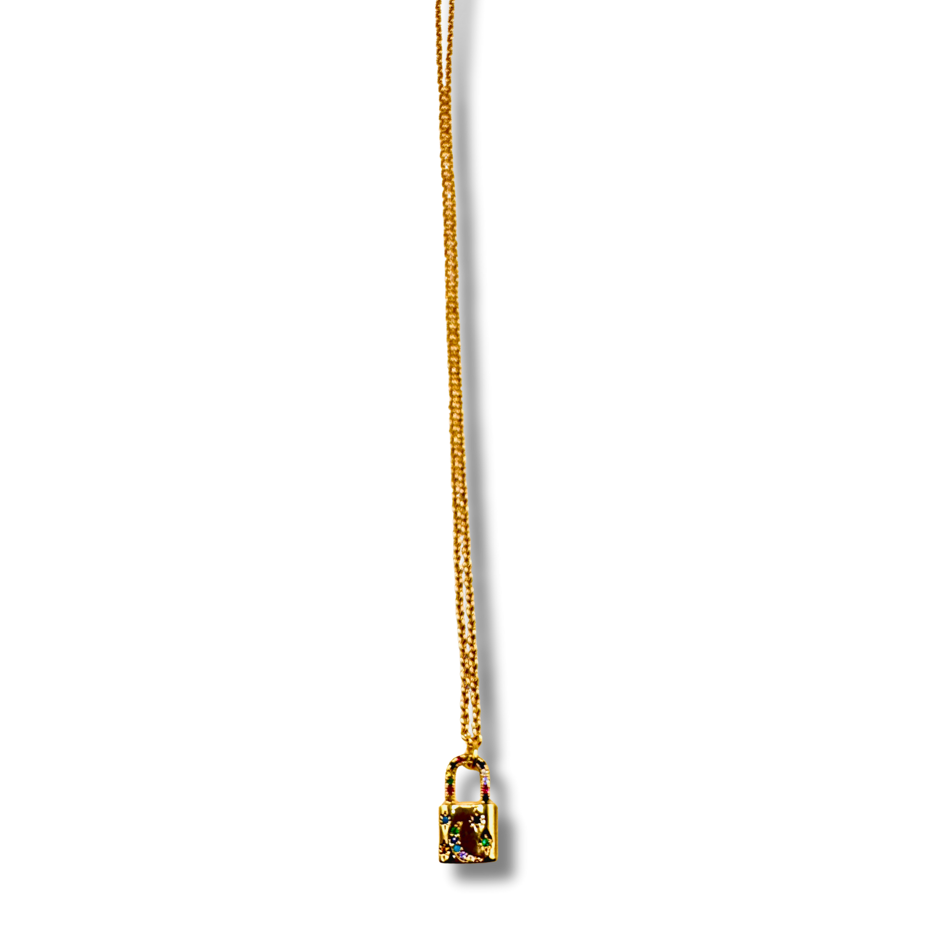 A timeless symbol of protection, love, and what we choose to hold close, the pavé lock represents both strength and intimacy. Designed to shine with subtle sparkle, this pavé lock necklace is crafted in 14kt gold–plated brass and set on a classic 16" chain that layers effortlessly or stands beautifully on its own. Elegant yet meaningful, it’s a modern keepsake meant to be worn daily as a reminder of connection, security, and personal power.