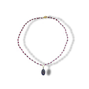 Wire Wrapped Ruby and Amethyst Stone Pendant Necklace