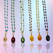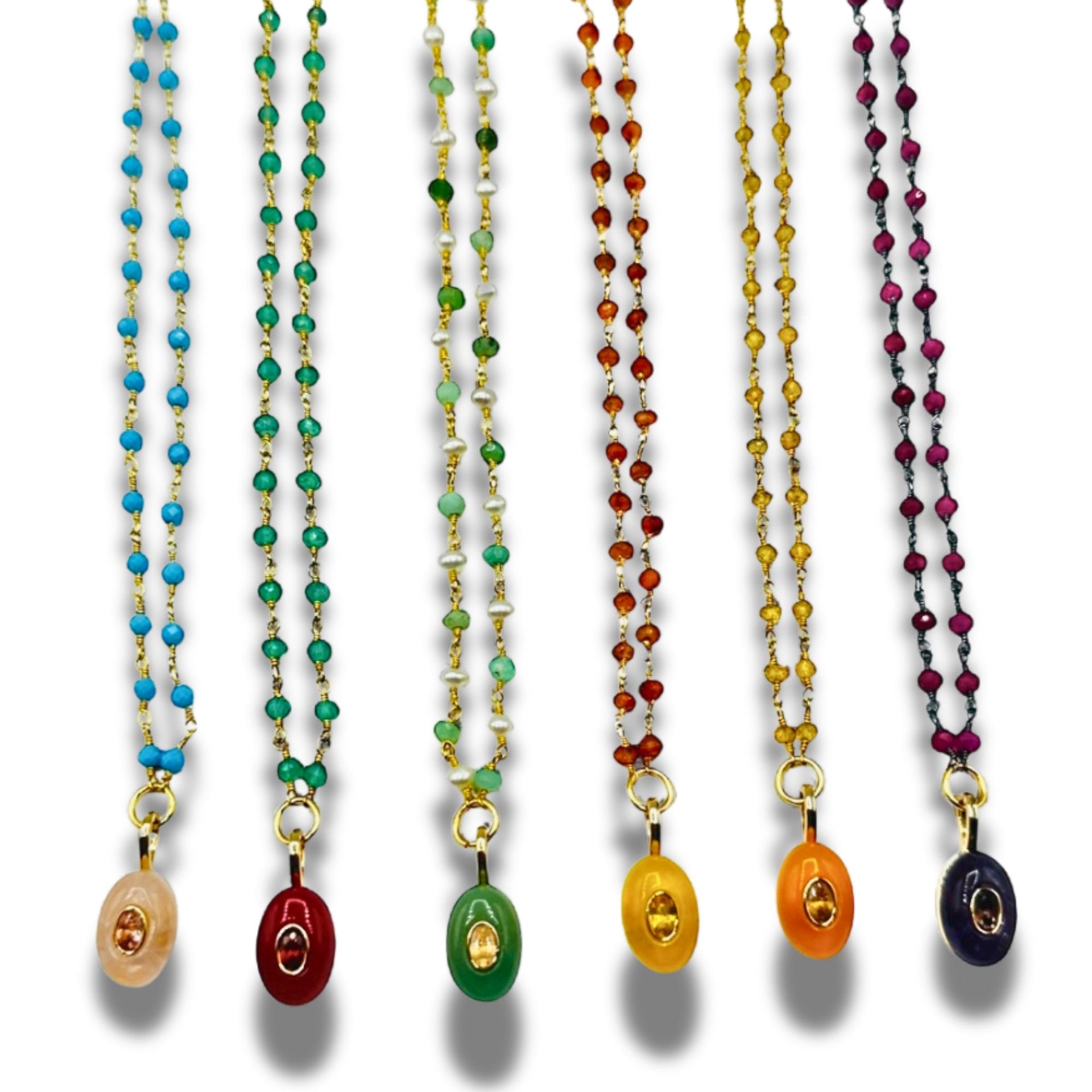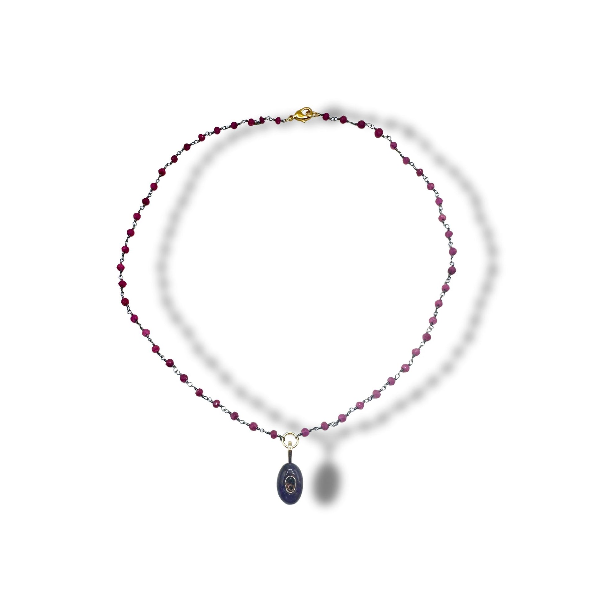 Delicate and refined, this necklace features a Ruby gemstone, each one wrapped by hand in fine wire for an artisanal touch. The dainty pendant hangs from a slender chain, making it perfect for layering or wearing solo as a subtle statement. Elegant yet effortless, it’s a beautiful way to add natural color and organic charm to any look.