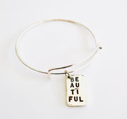 wire bangle bracelet - Approx. 3/4" reproduced hand stamped bar