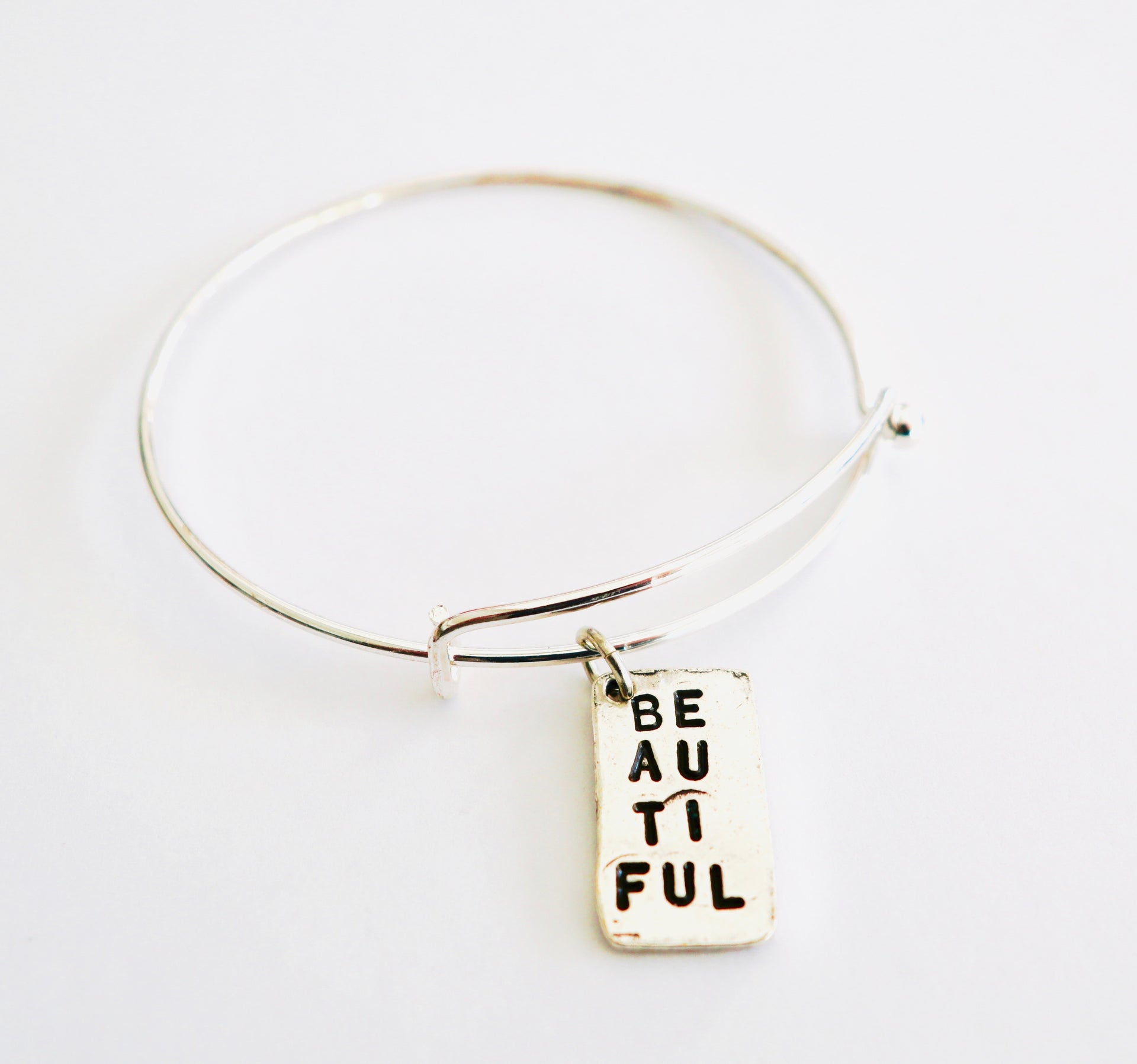 This beautiful hand-stamped bracelet is sure to catch compliments galore! This expandable accessory is so stylish you'll never want to take it off! Add an extra bit of bling to your wrist with this lovely piece!