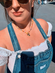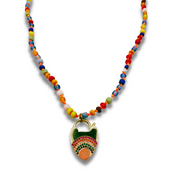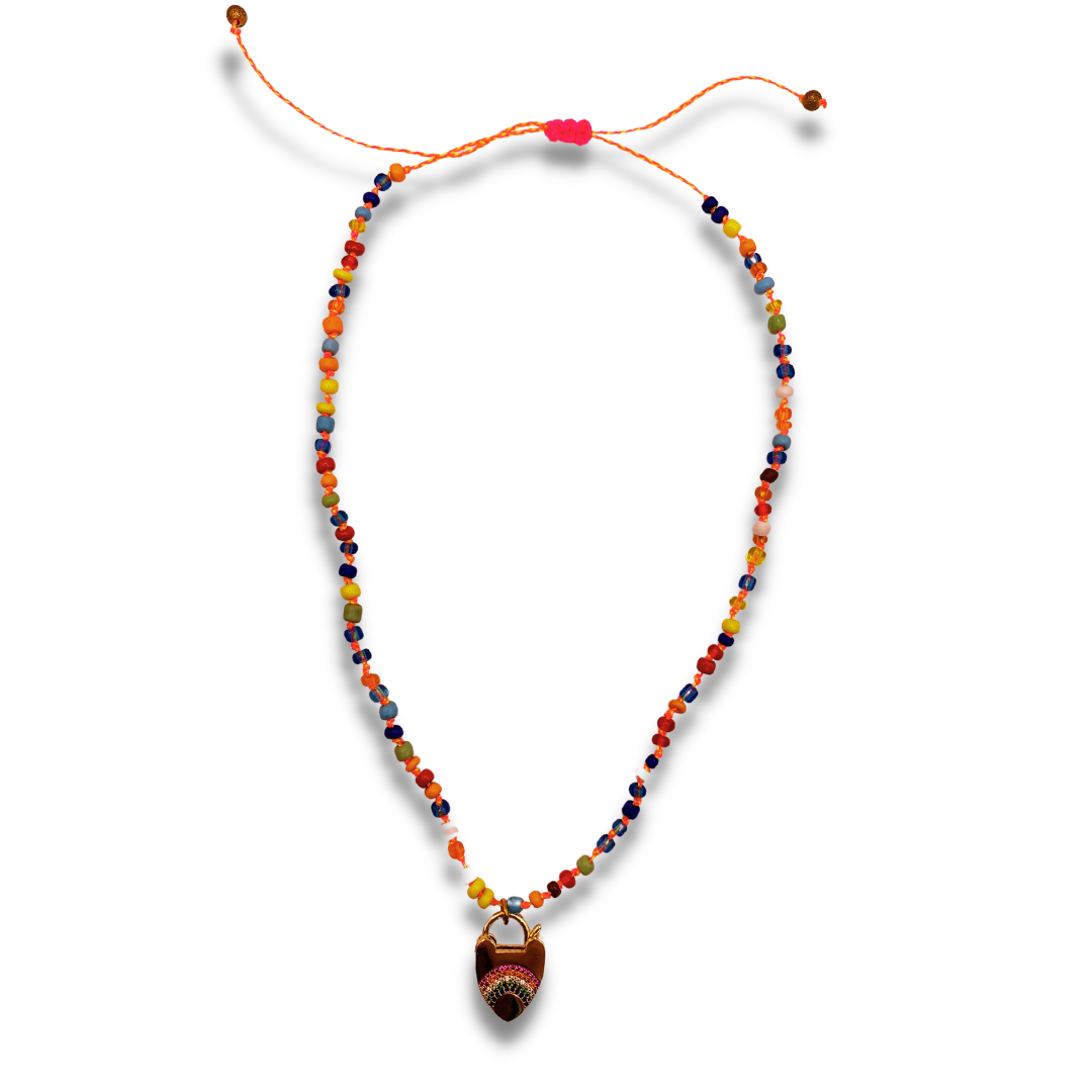 Featuring millefiori glass beads and a hand-knotted rainbow lock charm, our Boardwalk Babe Rainbow Heart Necklace is a vintage-inspired beauty! Looking for a way to add a little extra color and pizzazz to your everyday wardrobe? This unique piece is sure to turn heads and make hearts flutter. Get your shine on, babe!