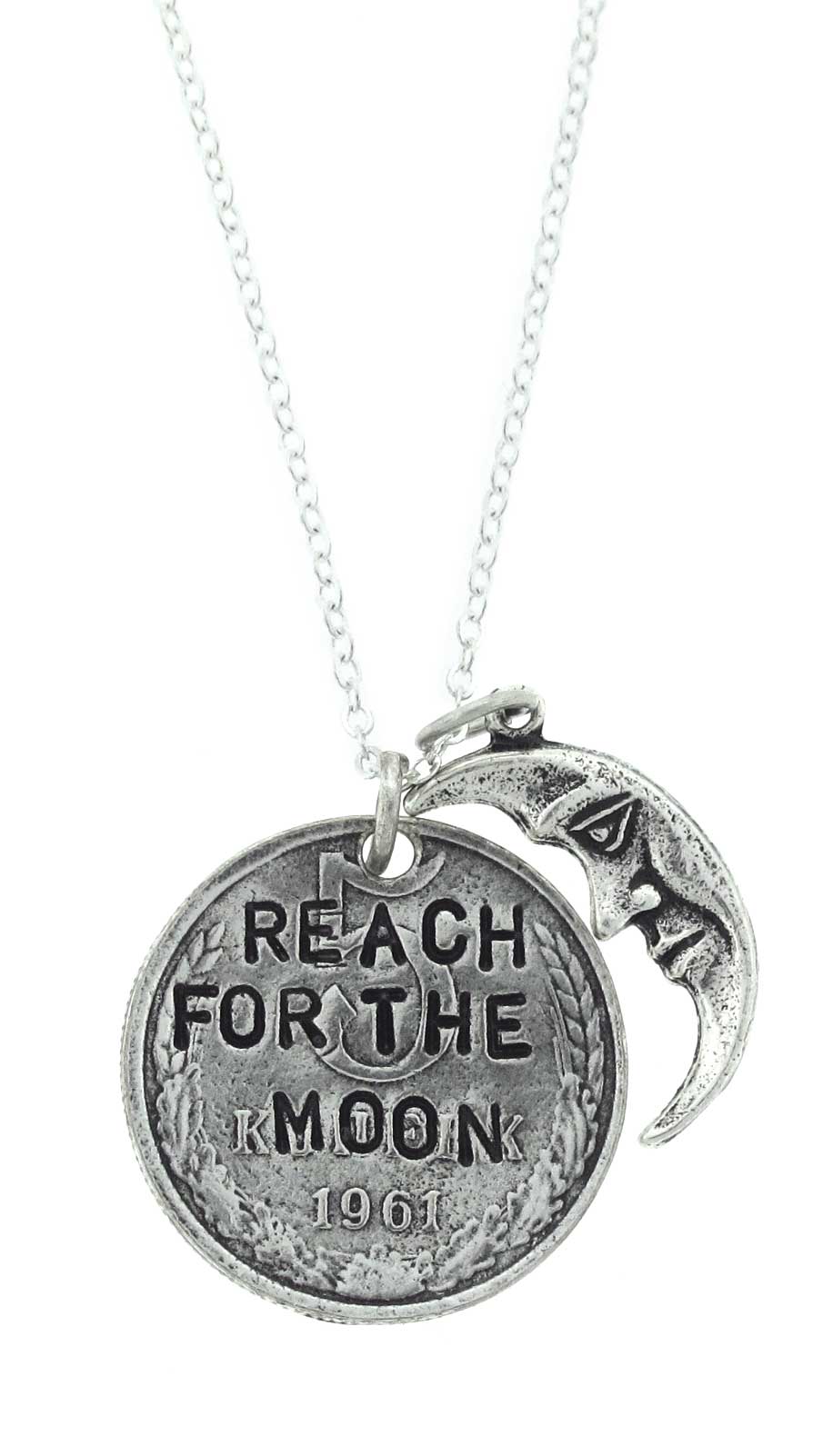 Reach for the Moon Stamped Coin Necklace with Moon Charm