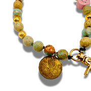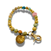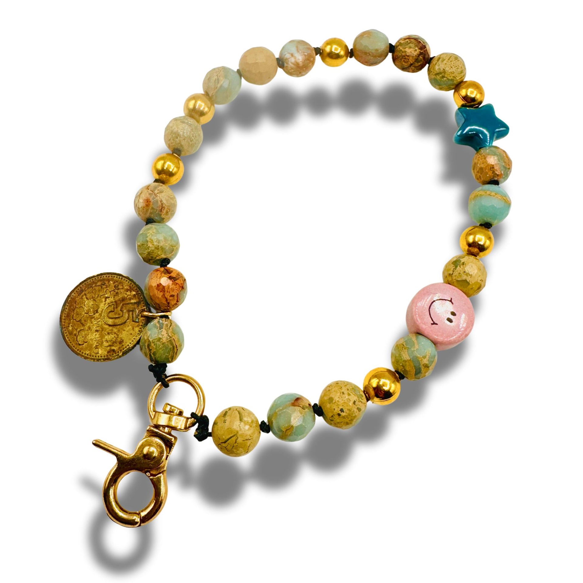 African Turquoise Wristlet with Coin Charm, Colorful Gemstone Phone Strap, Keychain & Purse Accessory