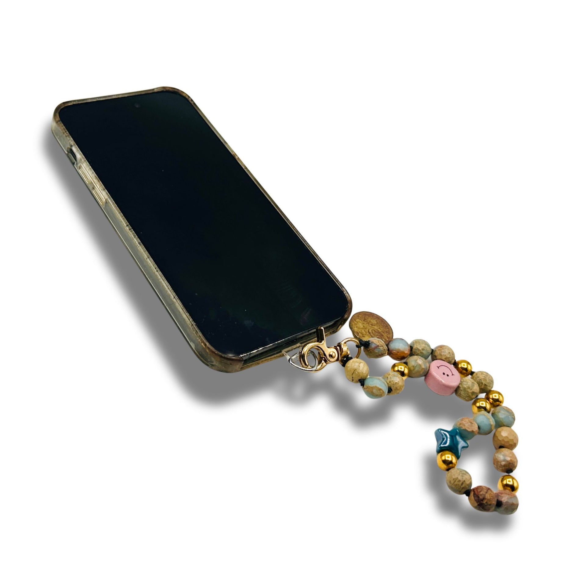 Add a pop of color and versatility to your everyday essentials with our handcrafted Gemstone Beaded Wristlets. Each piece is one-of-a-kind, featuring a mix of genuine stones, glass beads, and playful charms, no two are ever exactly alike. Designed for style and function, these multi-use accessories can be worn around the wrist, clipped to your keys, attached to your purse, or used as a chic phone strap.