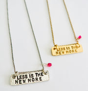 This exquisite necklace features a hand-stamped pendant, gently reminding us that less truly is the new more. Crafted in premium materials with a timeless design, the piece is an embodiment of sophistication and elegance. Perfect for any occasion, this necklace will elevate your style with its luxury appeal.