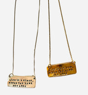 This exquisite piece of jewelry symbolizes the ever-changing nature of life. Crafted with sterling silver, the LIFE IS A RIVER NECKLACE features a hand stamped inscription that reminds us to appreciate the beauty of change. This elegant and timeless piece of art is sure to become an elegant addition to any jewelry collection.