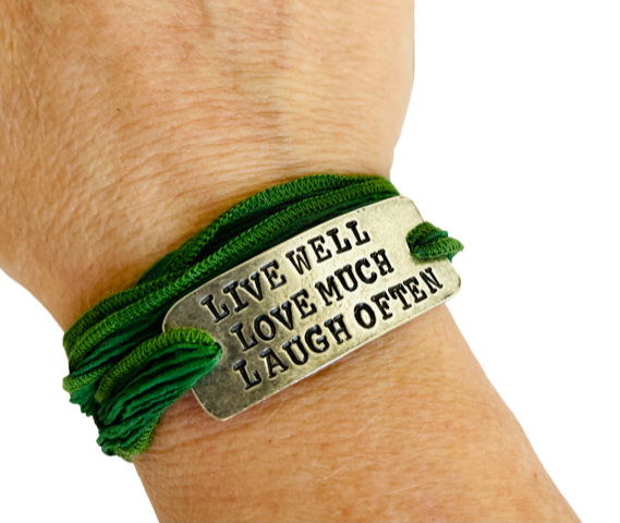 LIVE WELL, LOVE MUCH, LAUGH OFTEN SILK WRAP BRACELET