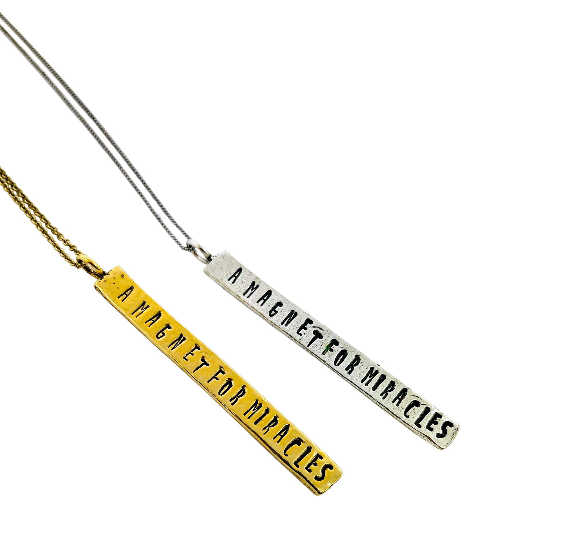 Savor everyday miracles with the Magnet for Miracles Stamped Necklace. Expertly crafted from the finest materials, this eye-catching bar necklace features a hand-stamped design that captures the tiny, special moments that make life beautiful. A timeless piece of jewelry for any occasion, it's the perfect accessory to make a statement of grace and elegance.