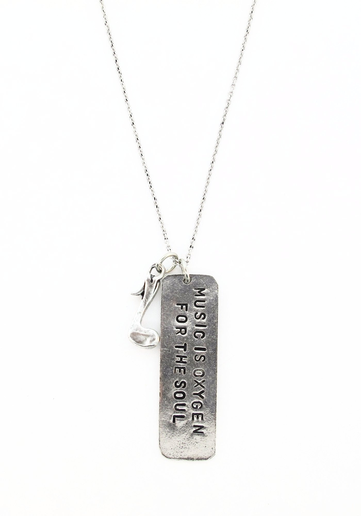 Music Is Oxygen for the Soul Hand Stamped Charm Necklace