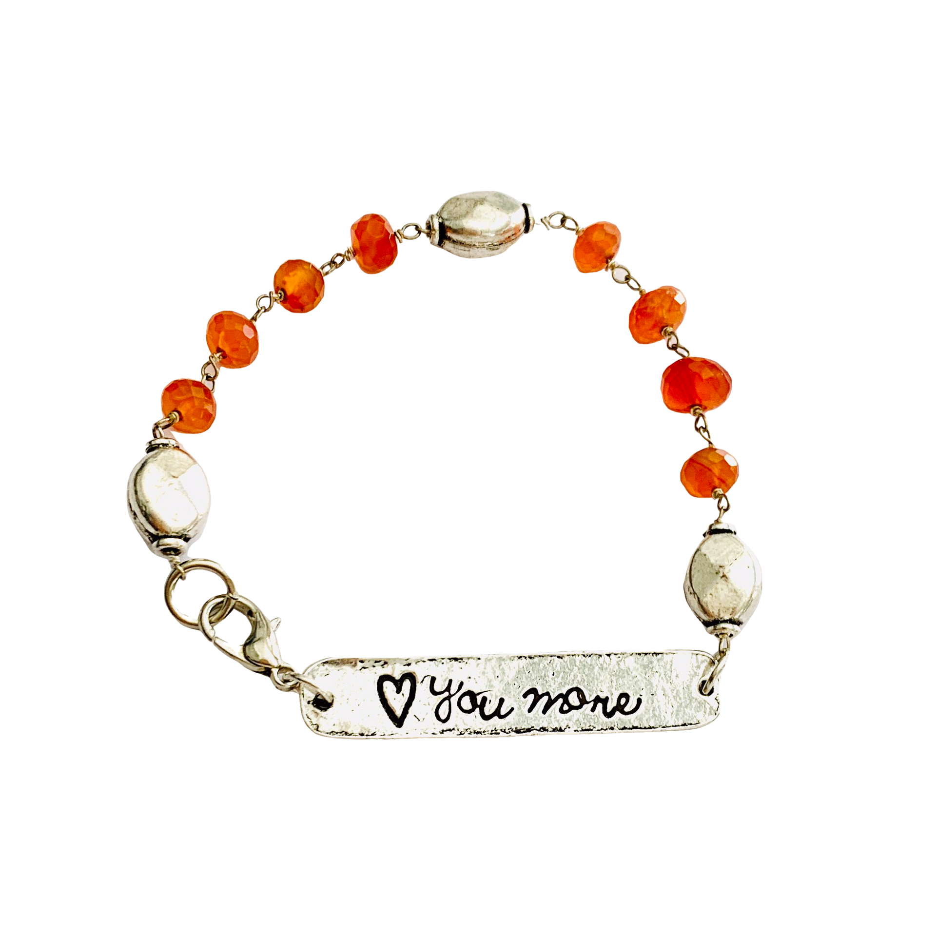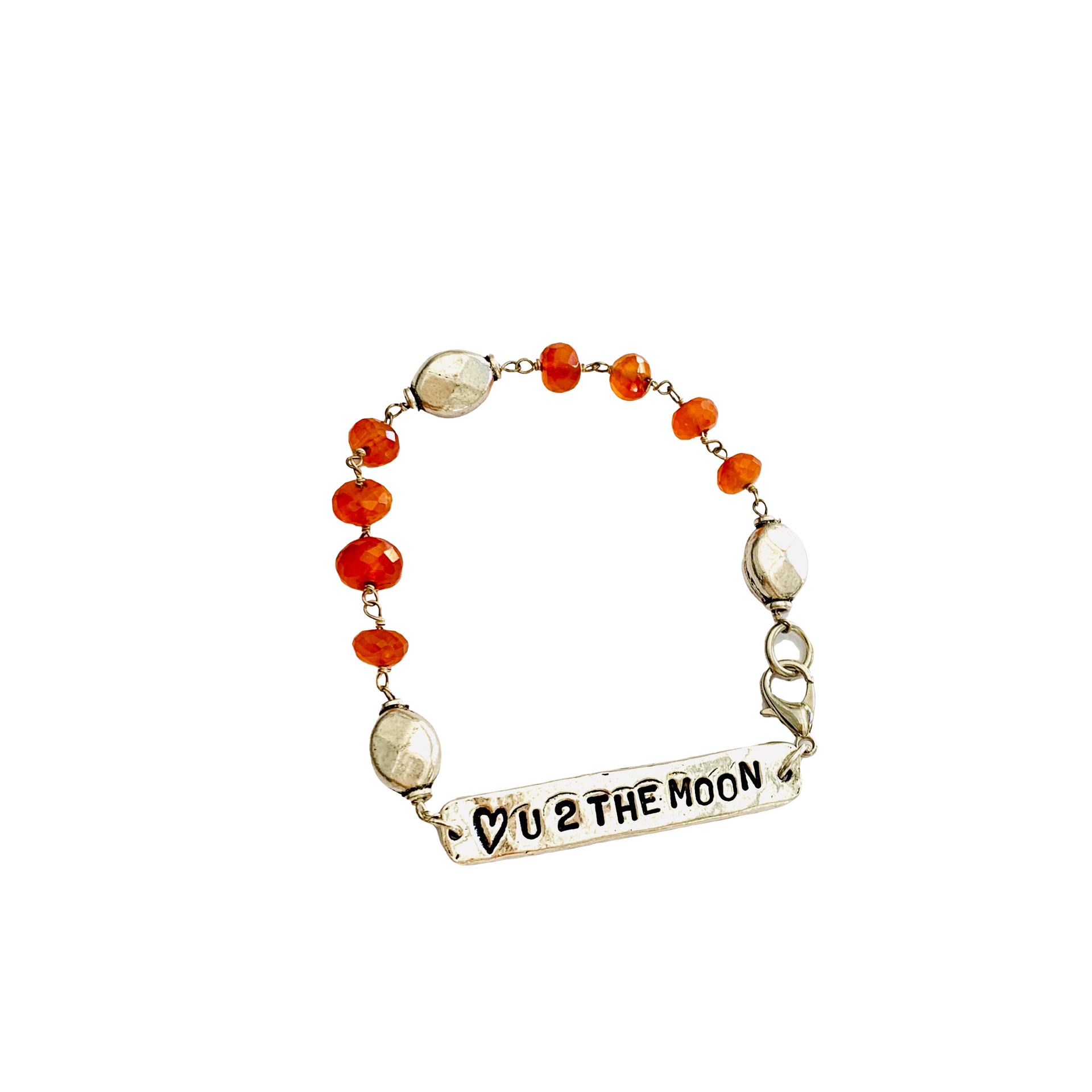 Love you to the moon and on the reverse love you more carnelian and silver bracelet
