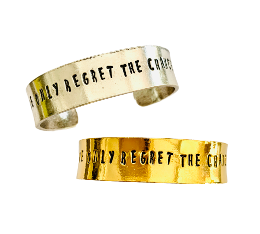 Step up your style game with this eye-catching We Only Regret the Chances We Didn't Take Stamped Cuff Bracelet. Crafted with high-quality materials, this stunning bracelet features an inspiring stamped design to encourage you to take chances and seize the day. Perfect for any occasion, this compelling jewelry makes a stylish statement.
