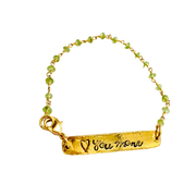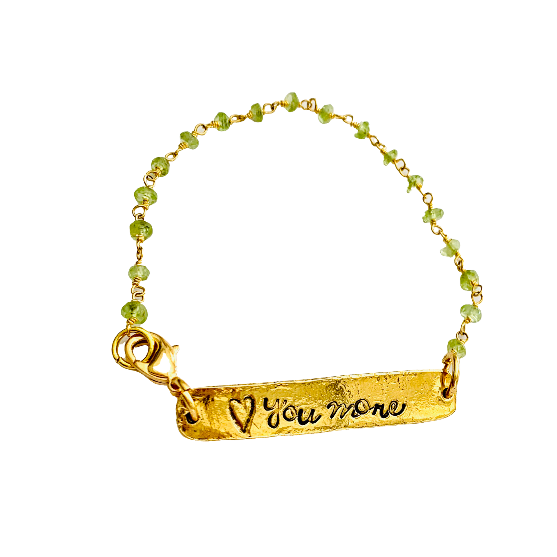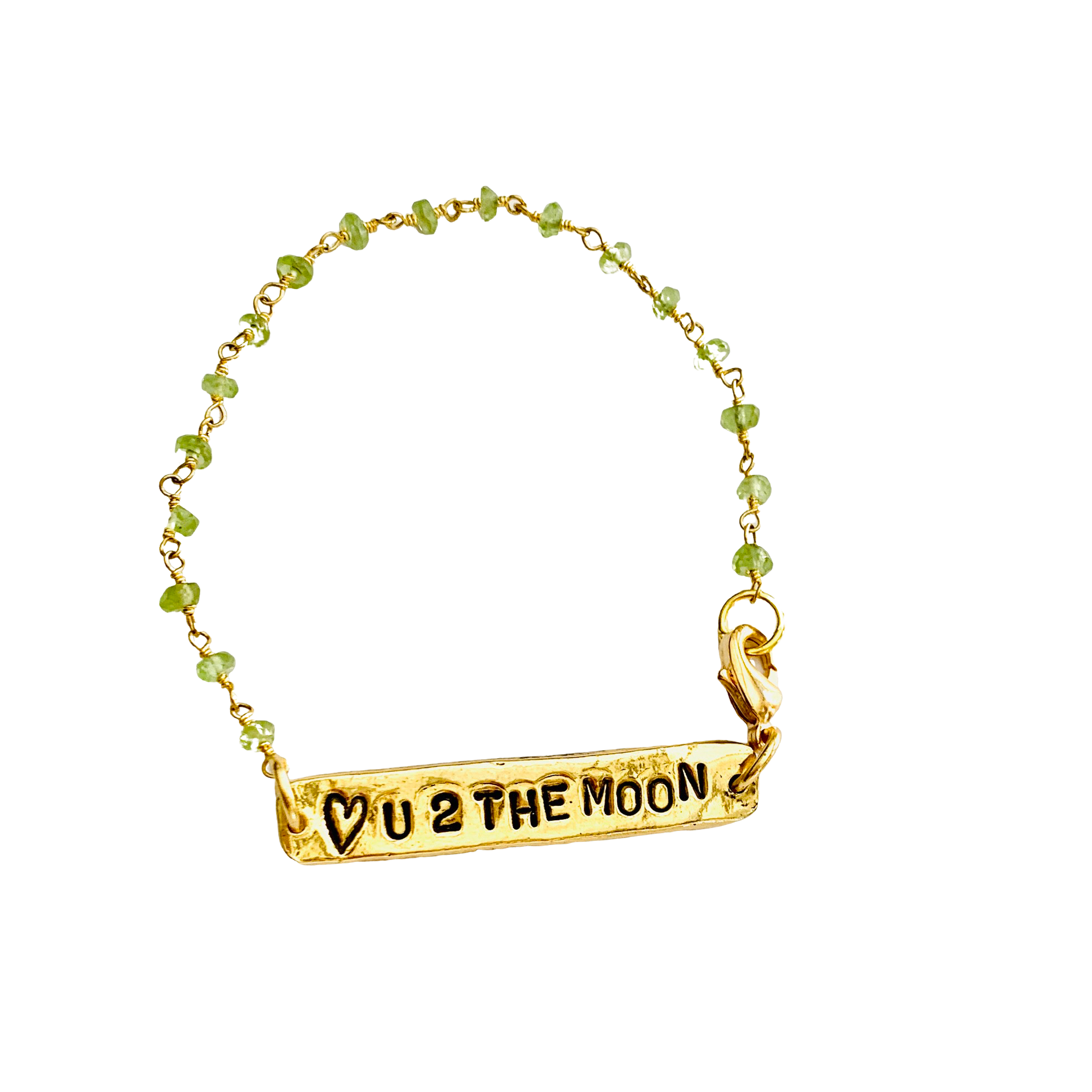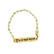 "Love you to the moon" and on the reverse "love you more" peridot bracelet.