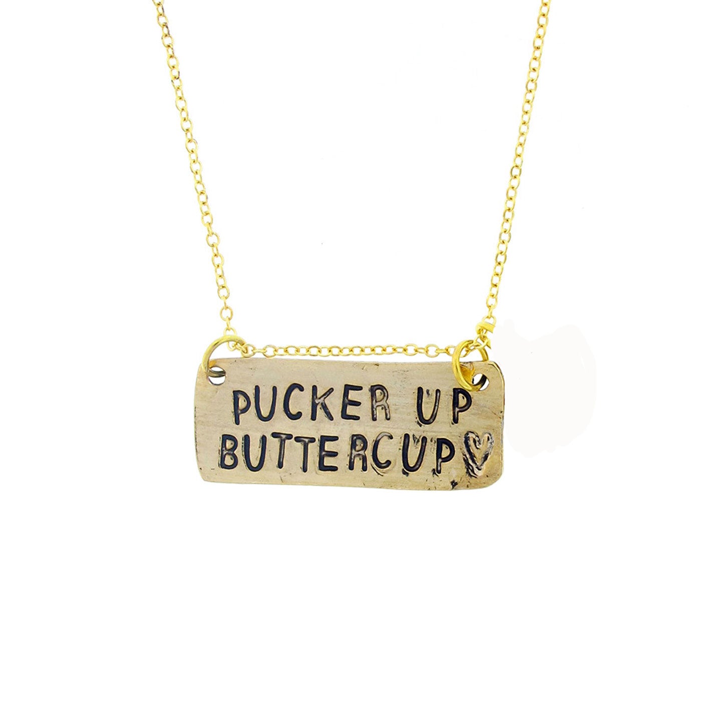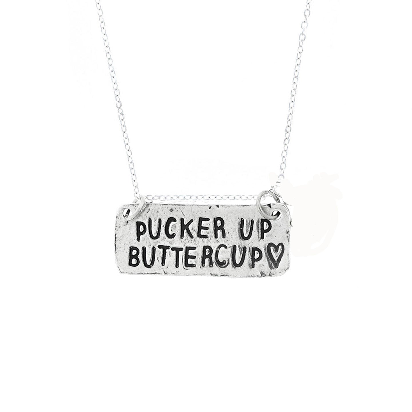 Make sure you pucker up buttercup for this one-of-a-kind hand stamped necklace! It's perfect for anyone looking for a funny and unique way to show their style, without taking themselves too seriously. (After all, who doesn't love a good pun?) It's sure to bring a smile to everyone who sees it!