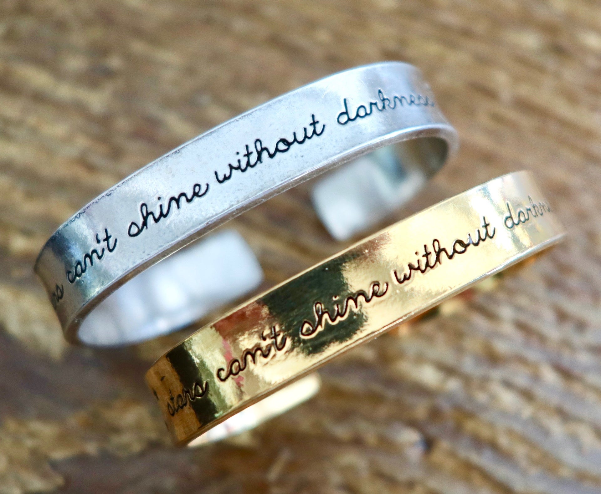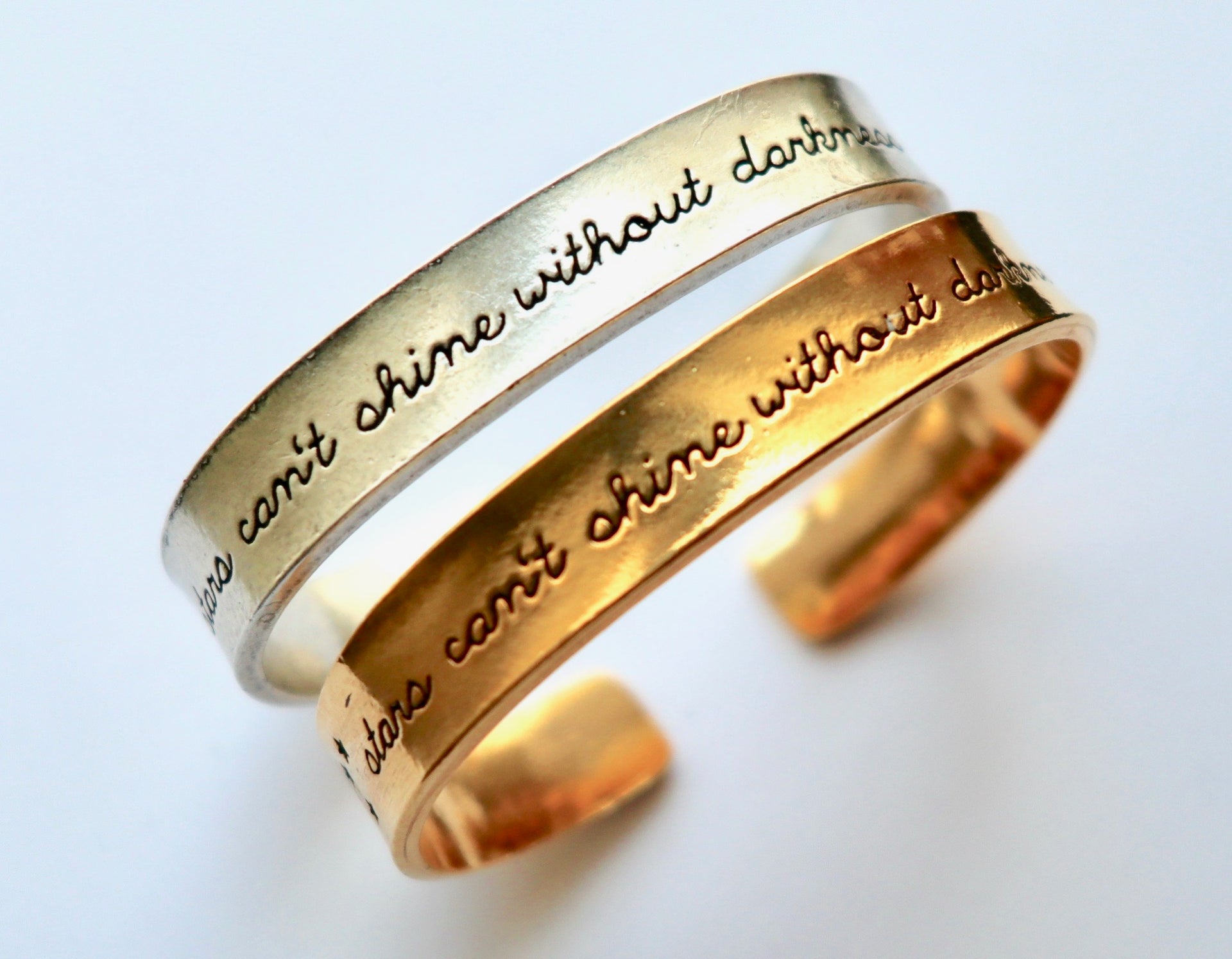 Stars Can't Shine Without Darkness Hand Stamped Cuff Bracelet