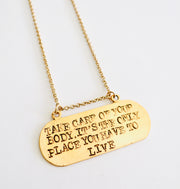 Take Care Of Your Body, It's The Only Place You Have To Live Stamped Necklace